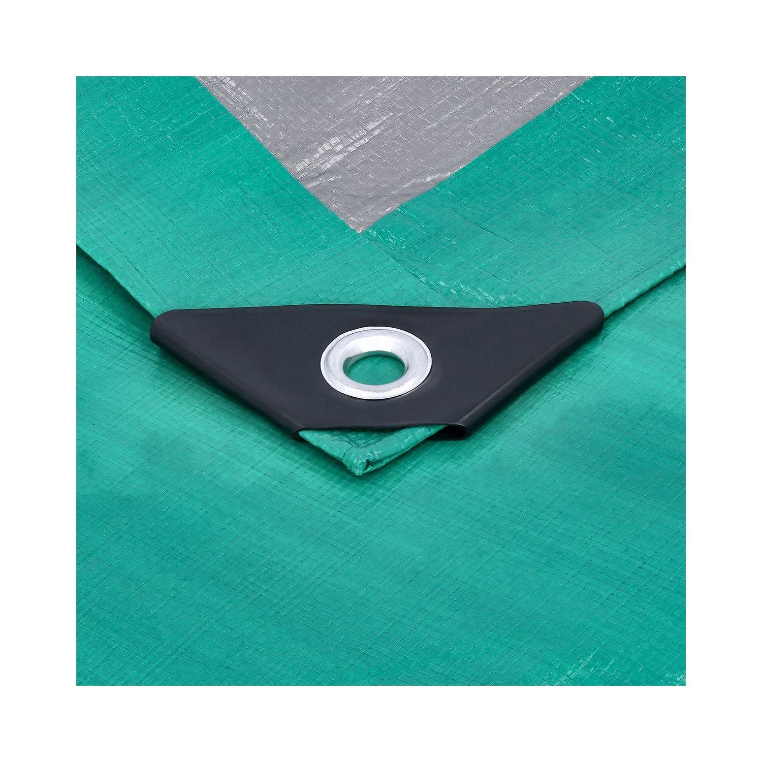- Versatile: For added versatility, this strong tarpaulin sheet is reversible: green on one side, grey on the other. This rugged tarpaulin sheet has grommets along all 4 edges for easy, secure tie downs. Use this large tarpaulin over your car or tools, store your dry firewood or use it as a ground sheet