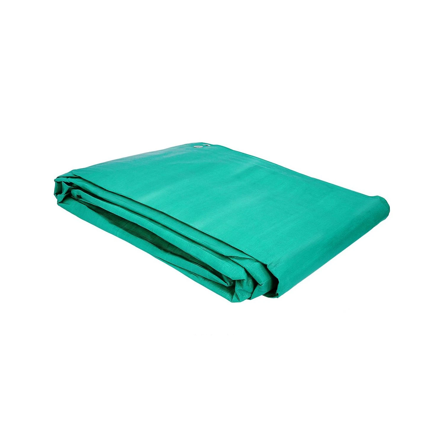 Provide weatherproof protection for your belongings and outdoor projects with this durable, water resistant tarpaulin from TOUGH MASTER®. This practical tarpaulin is created from 3 woven layers of hard wearing water resistant polyethylene. It’s coated on each side for added durability, resistance to water, mildew and tearing and protection against UV radiation. It guarantees year round protection in all weather conditions, rain and shine. Reinforced corners and rope reinforced heat sealed edges resist tearing, even in windy conditions or with heavy loads. This large tarpaulin is also reversible for extra versatility green on one side and grey on the other. That way, you have a choice of colours to suit the surroundings; the green blends in nicely with vegetation, for example. This rugged tarpaulin sheet has metal grommets along all 4 edges so that you can add a cord to secure the tarp around whatever it is that you’re trying to protect: firewood, outdoor furniture, piles of compost or tools. These grommets are created from sturdy aluminium to resist rust and corrosion. You’ll find plenty of uses for this water resistant tarpaulin both on the worksite or in the garden: It’s ideal for covering a roof, using as a base for piles of sand or soil or protecting building materials or logs, at your campsite or even at a picnic site. This TOUGH MASTER® tarpaulin sheet is available in a range of sizes, too: 2x3m, 3x4m, 4x6m, 6x8m, 8x10m, 10×12 and 10x15m. With this great choice of sizes, you’re sure to find a water resistant tarpaulin to suit your needs. For added coverage, you can get more than one tarpaulin and secure them together.