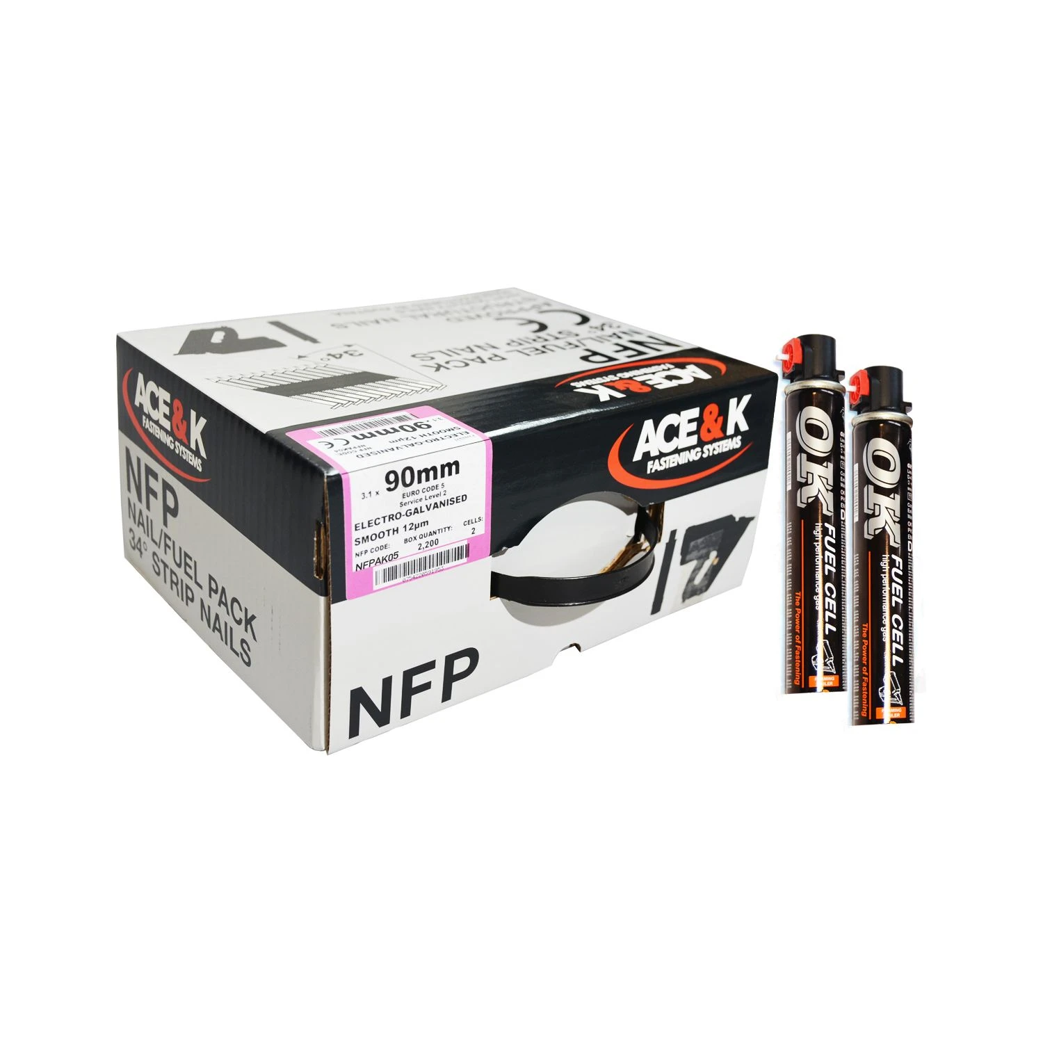 ACE & K NFPAK05FC Galvanised 34° Angle Screw Framing Nails 90mm – Box Qty. 2200 Nails & 2 Large Fuel Cells