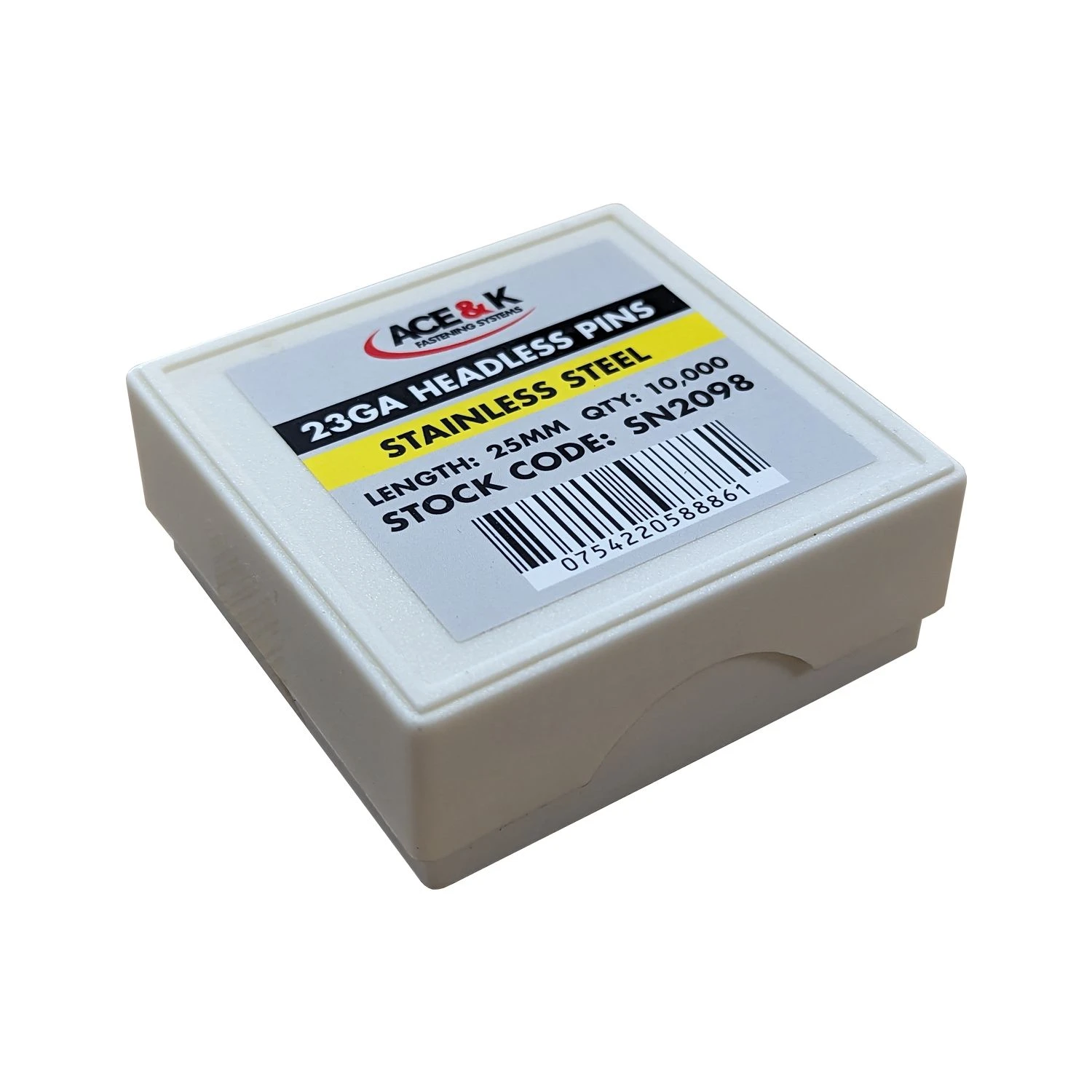 ACE & K SN2098 23 Gauge Stainless Steel Headless Pin 25mm – Box Qty. 10000