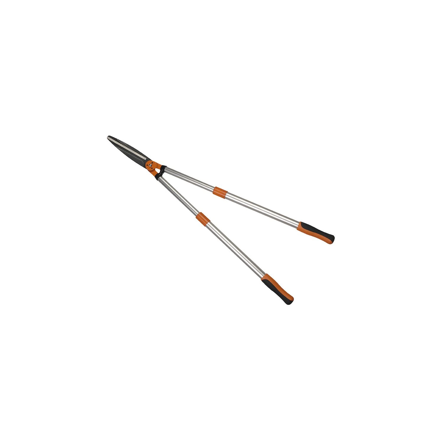 Bahco PG-57 Expert Telescopic Hedge Shears have handles made of silver aluminium tubes, that are extendable.