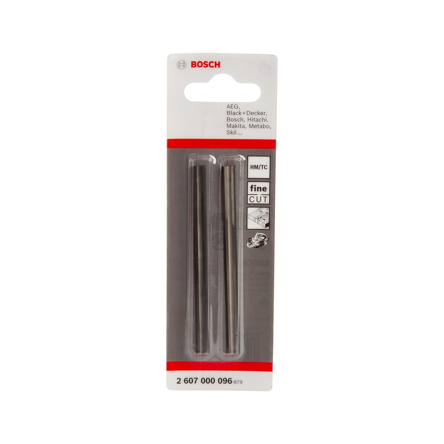 The Bosch 2607000096 is a pack of 2 tungsten carbide replacement planer blades. These blades are suitable for use with most brands of planer that accommodate 82mm blades including HiKOKI, Makita and Metabo. They deliver clean planing results on all wooden materials and have sharp blades which are double-edge ground, enabling the reversible use of either side.