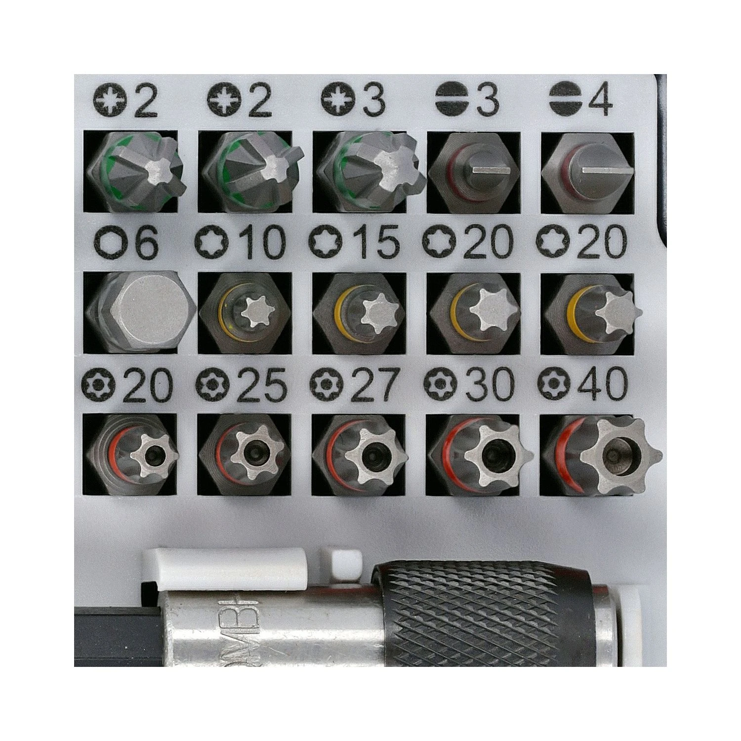 The Bosch 2607017359 bit set is a handy little set to keep with you. There is a belt clip on the reverse. The bits are colour coded for easier identification, in the storage box the bits are in a clear layout.