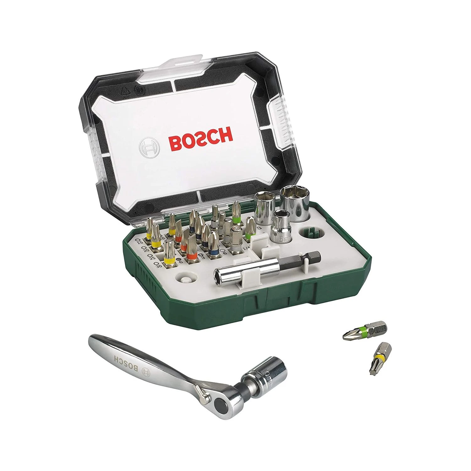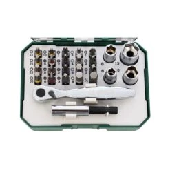 High-grade set with colour-coded screwdriver bits, standard nutsetters and ratchet for various screwdriving and assembly work. Durable screwdriver bits for 5 screw head types in 20 standard sizes.