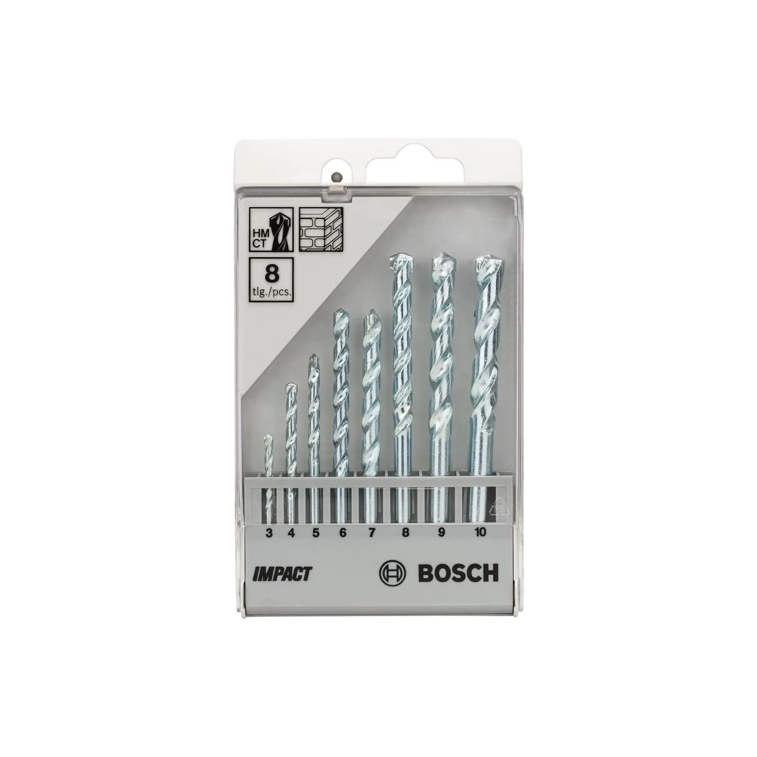 The Bosch 2607018366 CYL-1 Masonry Drill Bit Set features 8 drill bits ideal for drilling into masonry. The CYL-1 2-flute U-shape provides excellent dust removal while its standard carbide tip makes the bit more wear-resistant. This product’s intended use is for masonry and limestone drilling.