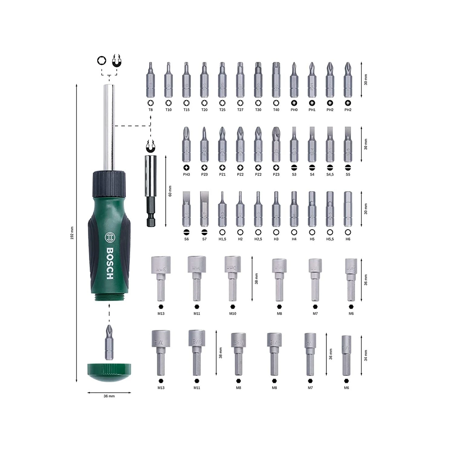 The Ratchet Screwdriver Bit Socket Set 46 piece is ideal for screwdriving and installation tasks. Conveniently, this set is made up of durable screwdriver bits that will fit all standard screw types and sizes. What’s more, it features a magnetic universal holder for fast bit changes and a reliable screw hold in the bit, making it perfect for professionals to use. On top of this, it has 1 practical manual screwdriver with ratchet function and bit storage in the handle.