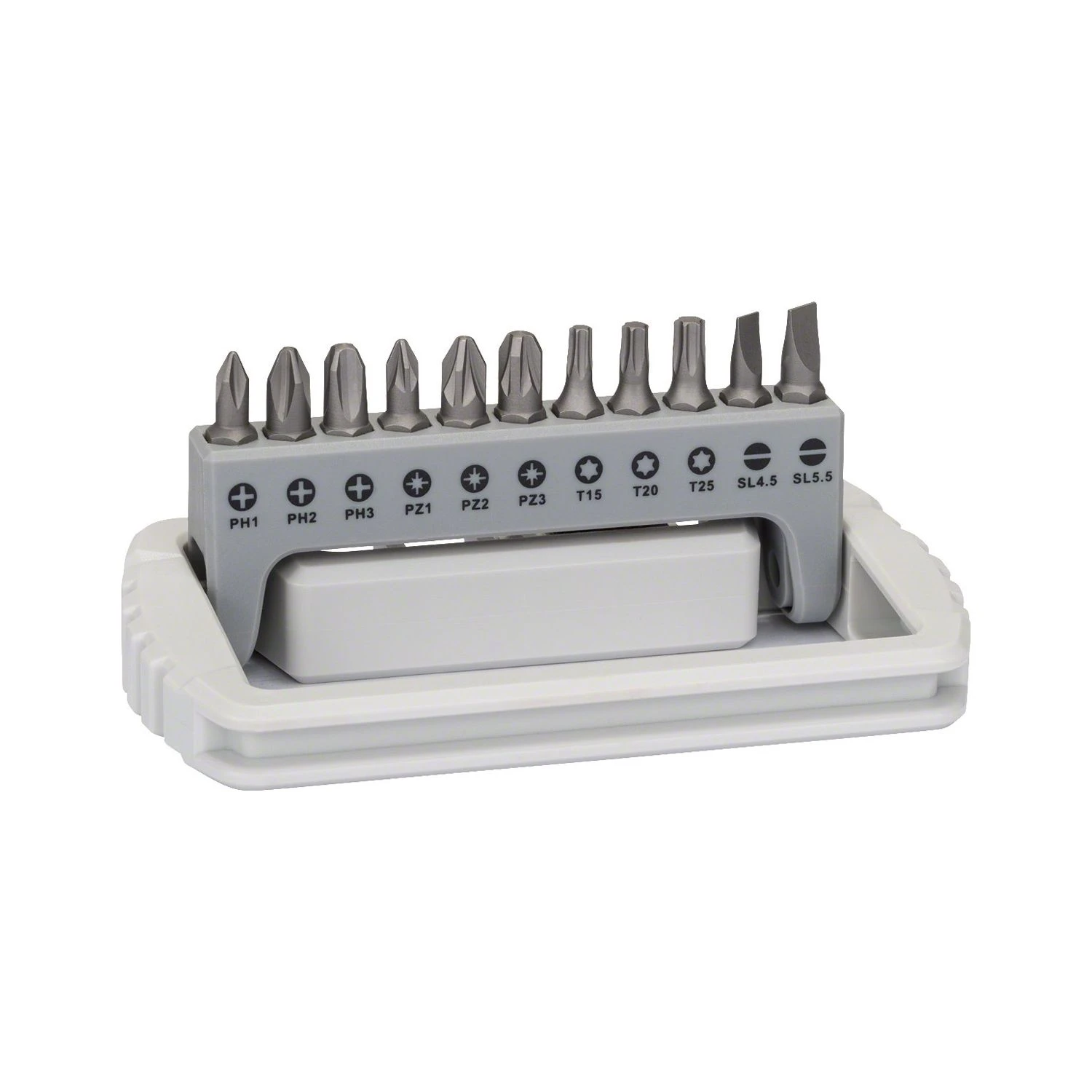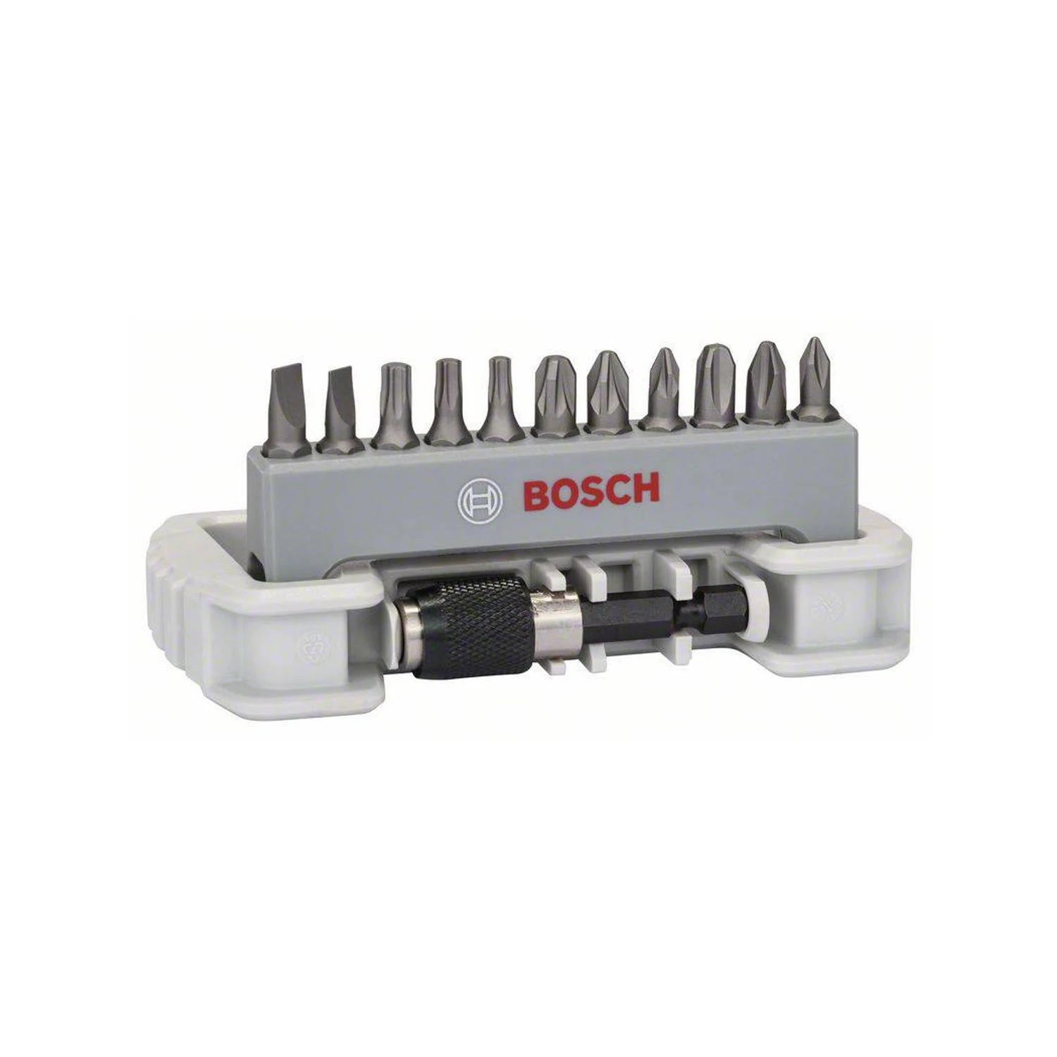 Bosh 11+1 Piece screwdriver bit set extra hard. Bits length 25 mm, ISO 1173 C6.3, with quick-change universal holder.