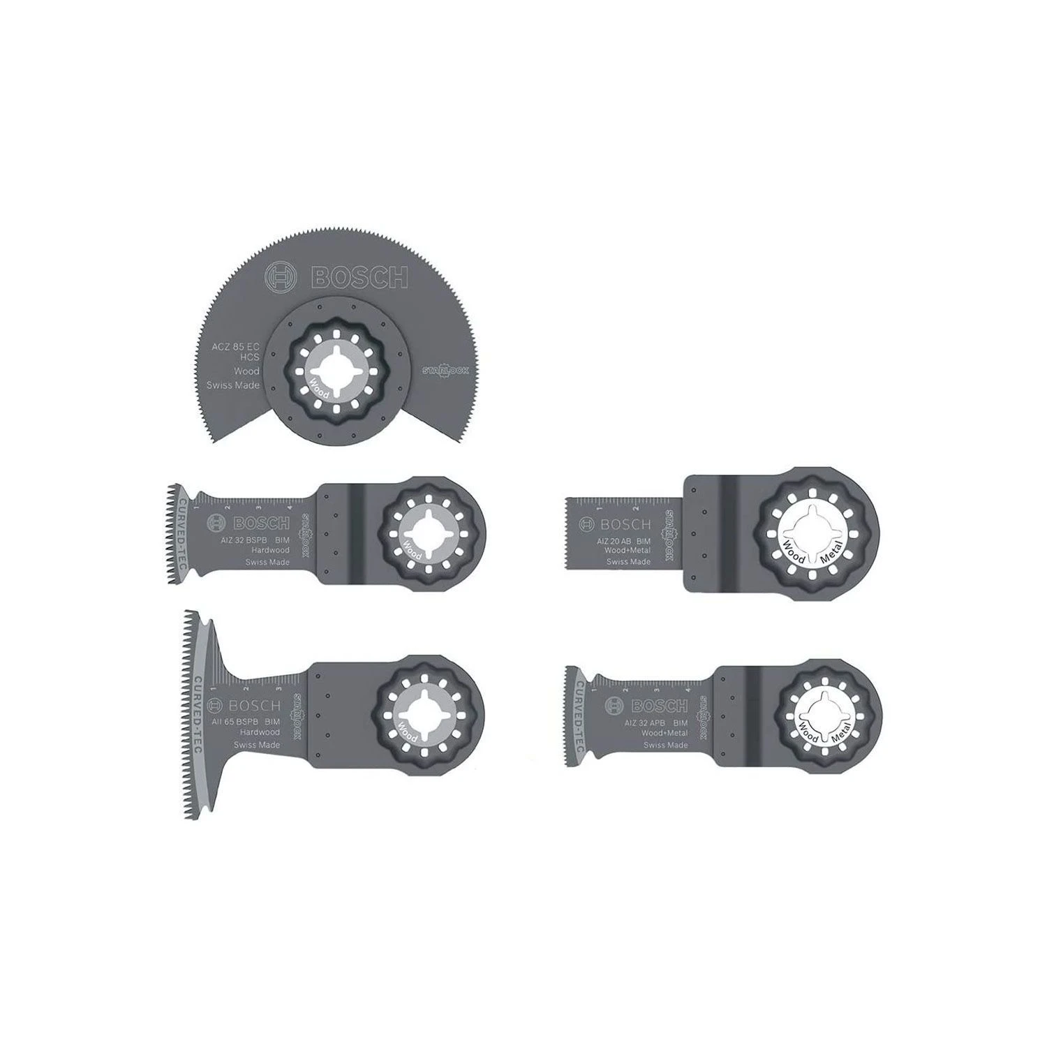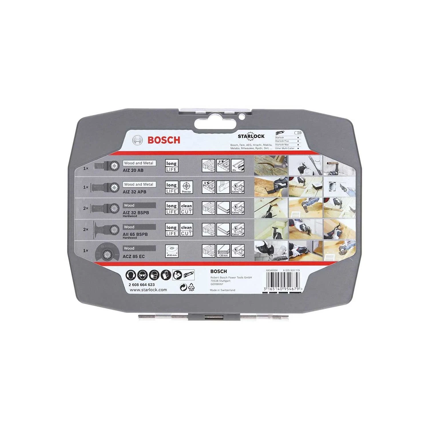 The Bosch 2608664623 Wood Starlock 7 piece Set contains 7 versatile tools ideal for working with wood. Create quick and accurate work with hard/solid wood, polyvinyl chloride, laminate, coated plate, plywood panel,parquet, and drywall. Designed for professional craftsmen and DIY enthusiasts, this durable set features a Starlock fitting system, which increases power transfer and enables a greater range of applications. The Starlock Snap-In mounting system allows a rapid 3 second blade removal and exchange system without having to touch the blade. All products are suitable for use with Starlock, Starlock Plus, Starlock Max or OIS multi-tools.