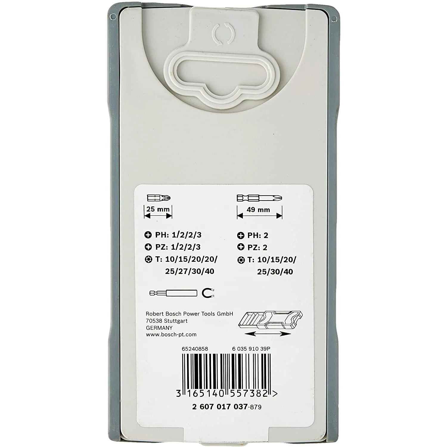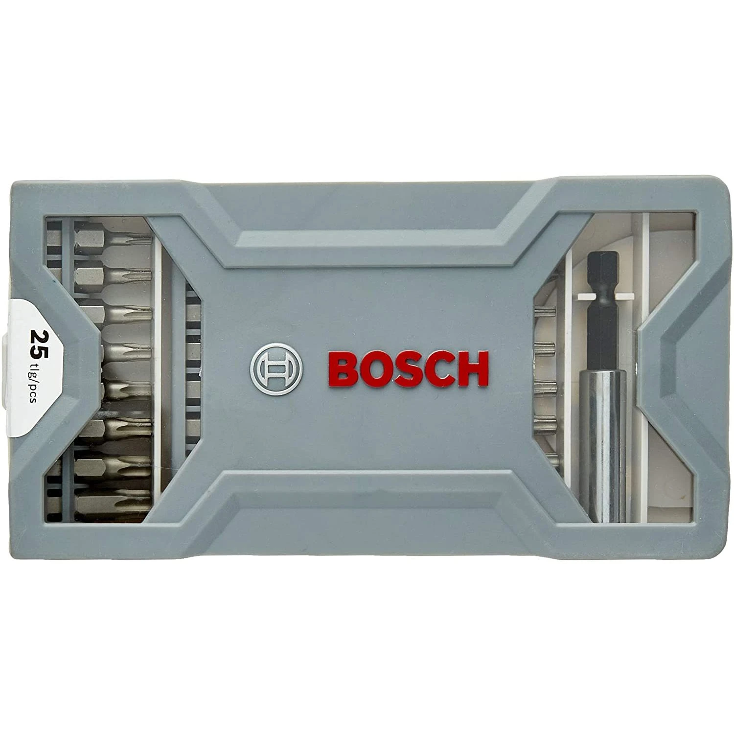 1 x 25-piece screwdriver bit set PH1, PH2 (2×25 mm), PH3, PZ1, PZ2 (2×25 mm), PZ3, T10, T15, T20 (2×25 mm), T25, T27, T30, T40, T10, T15, T20, T25, T30, T40, PH2 (1×49 mm), PZ2 (1×49 mm), bit holder