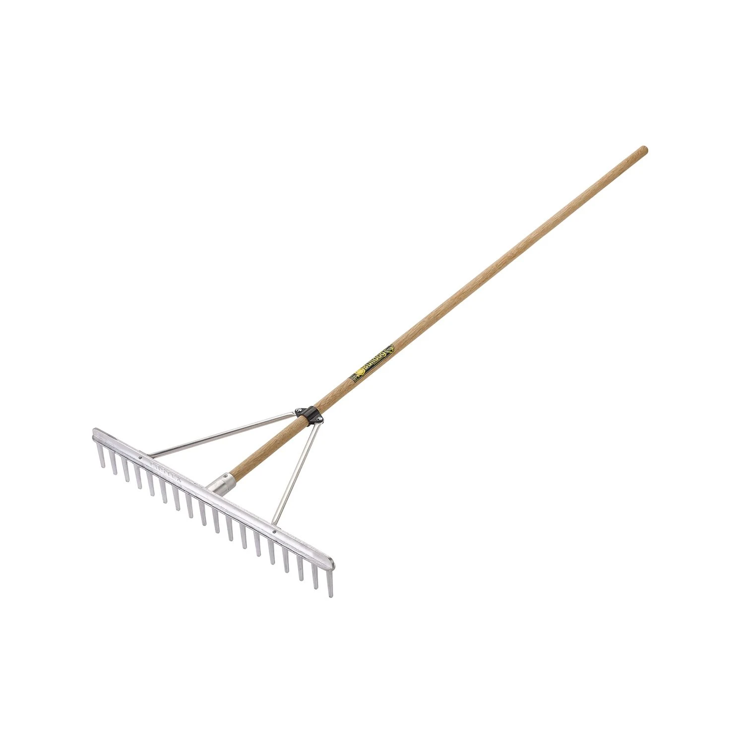This Bulldog aluminium hay rake from Bulldog’s Premier range is similar to a wood hay rake except the working end of the tool is all metal for strength. This makes it ideal for tougher use. The rake has large spaced teeth, which help to collect the hay in economical quantities. It is perfect for hay raking, shaping and levelling newly dug beds, collecting grass clippings and raking up leaves. The rounded metal teeth skim along the ground without snagging or digging in.