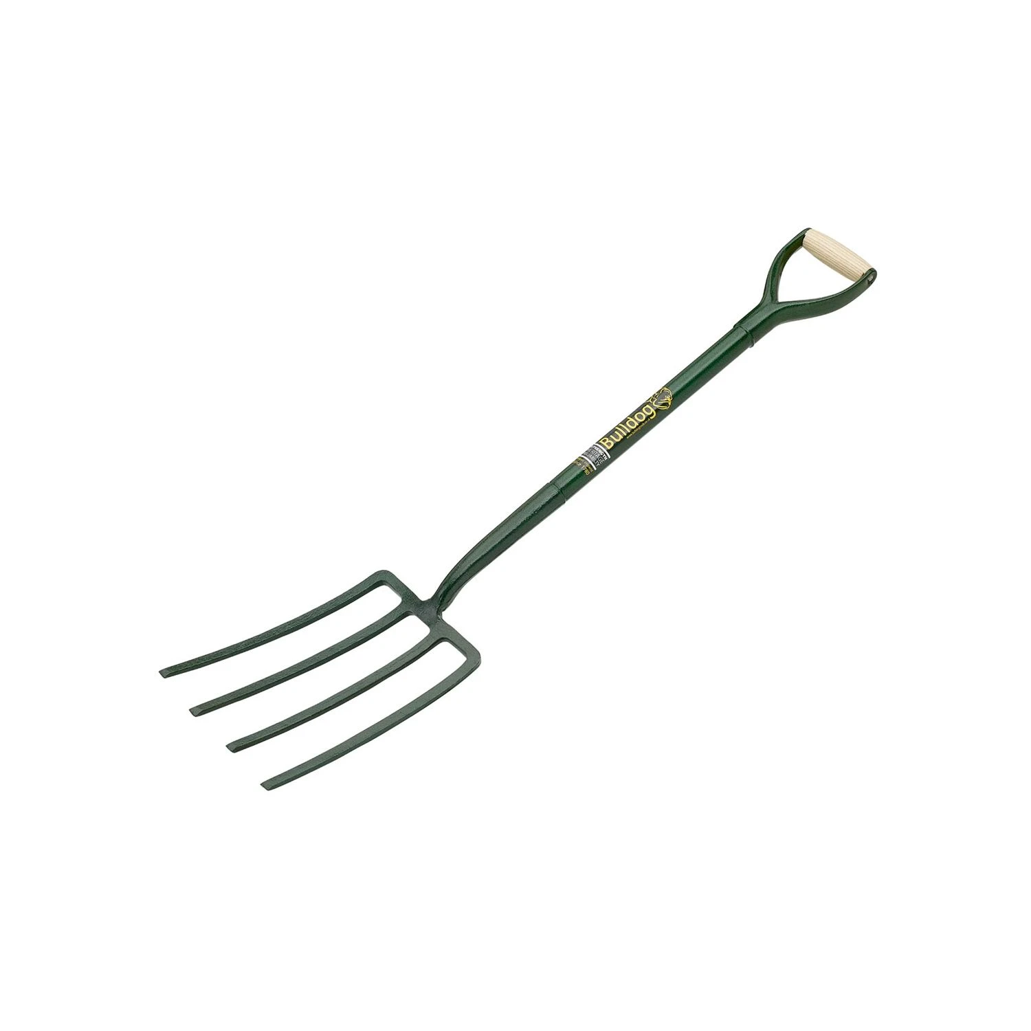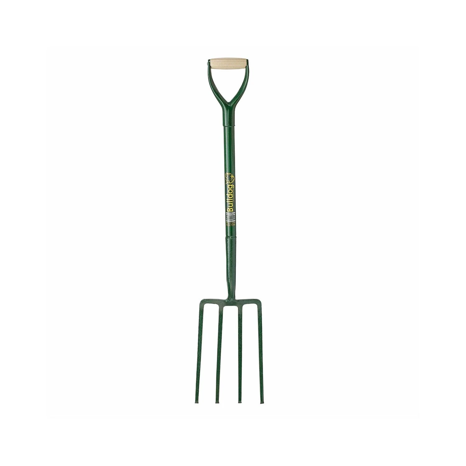 Bulldog 5TFAM Trenching Fork Metal MYD.This Bulldog All Metal Trench Fork is solid forged entirely out of one piece of steel, which increases its strength and durability. This fork has a wooden ‘YD’ shaped handle.