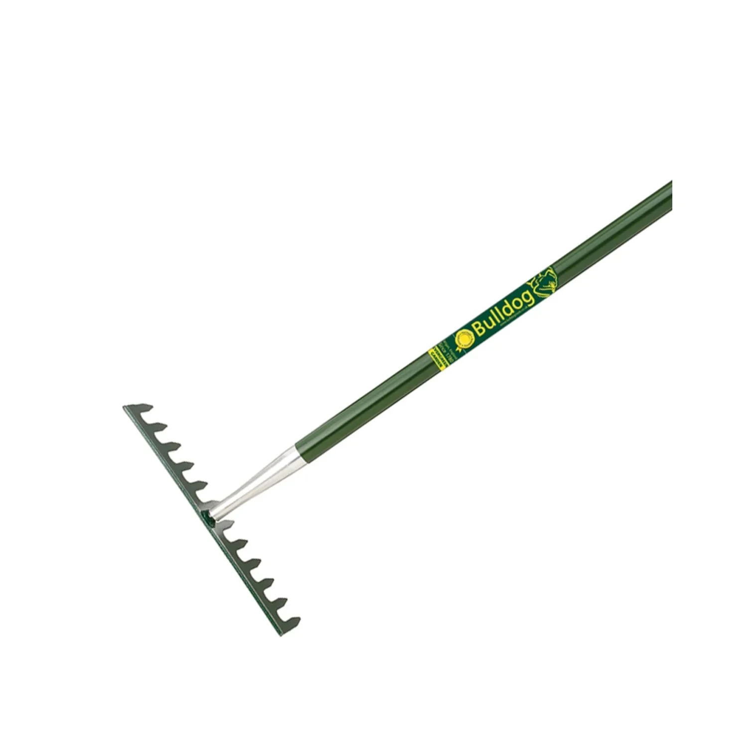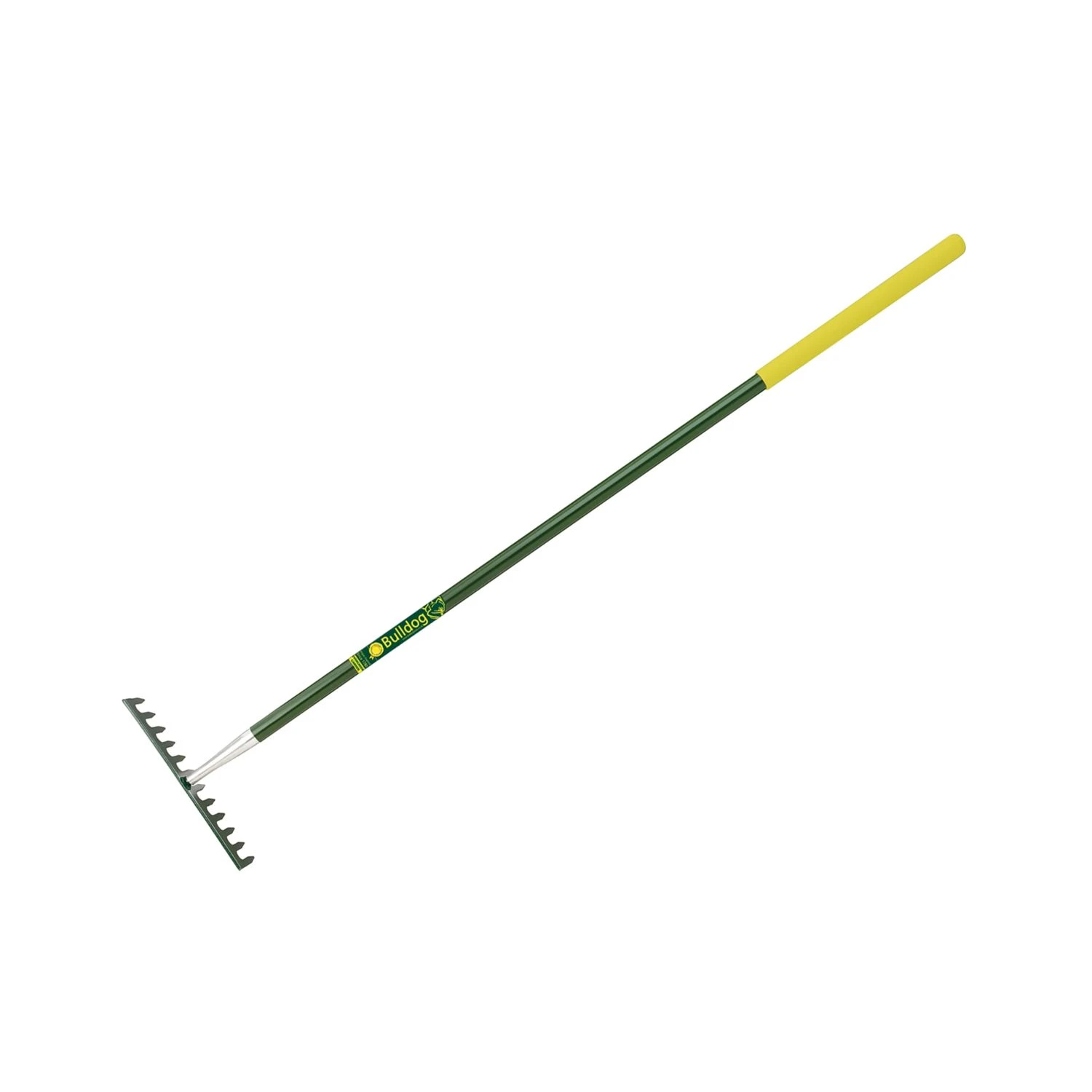 The Bulldog Evergreen Garden Rake is the ideal tool for the preparation of soil prior to planting. The head is epoxy coated for rust resistance, with a 54in PVC aluminium coated lightweight shaft and comfort feel grip.