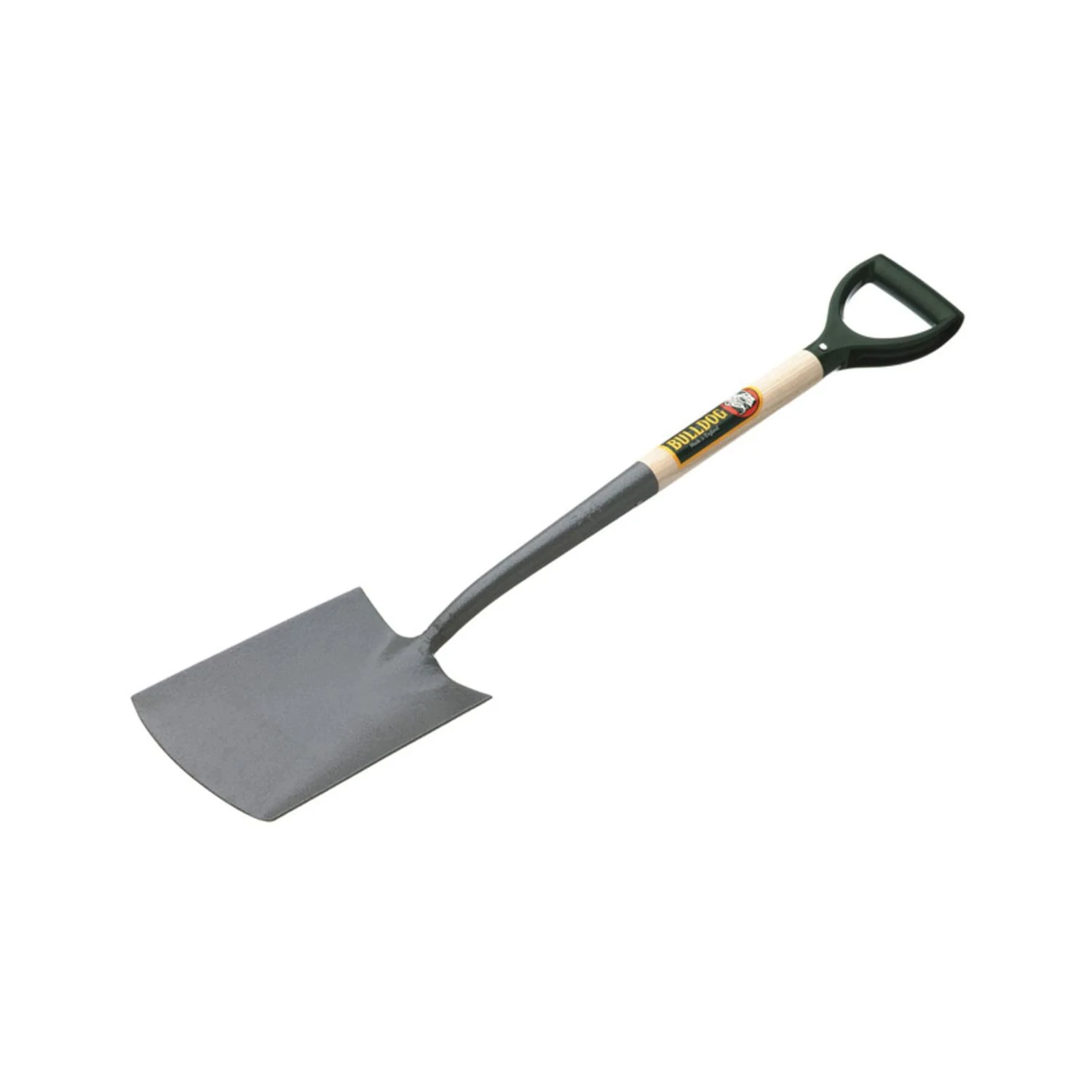 This Bulldog traditional style digging spade is solid forged from one piece to give strength and durability in the garden. It has an ash handle for strength and durability, with a plastic D-grip.