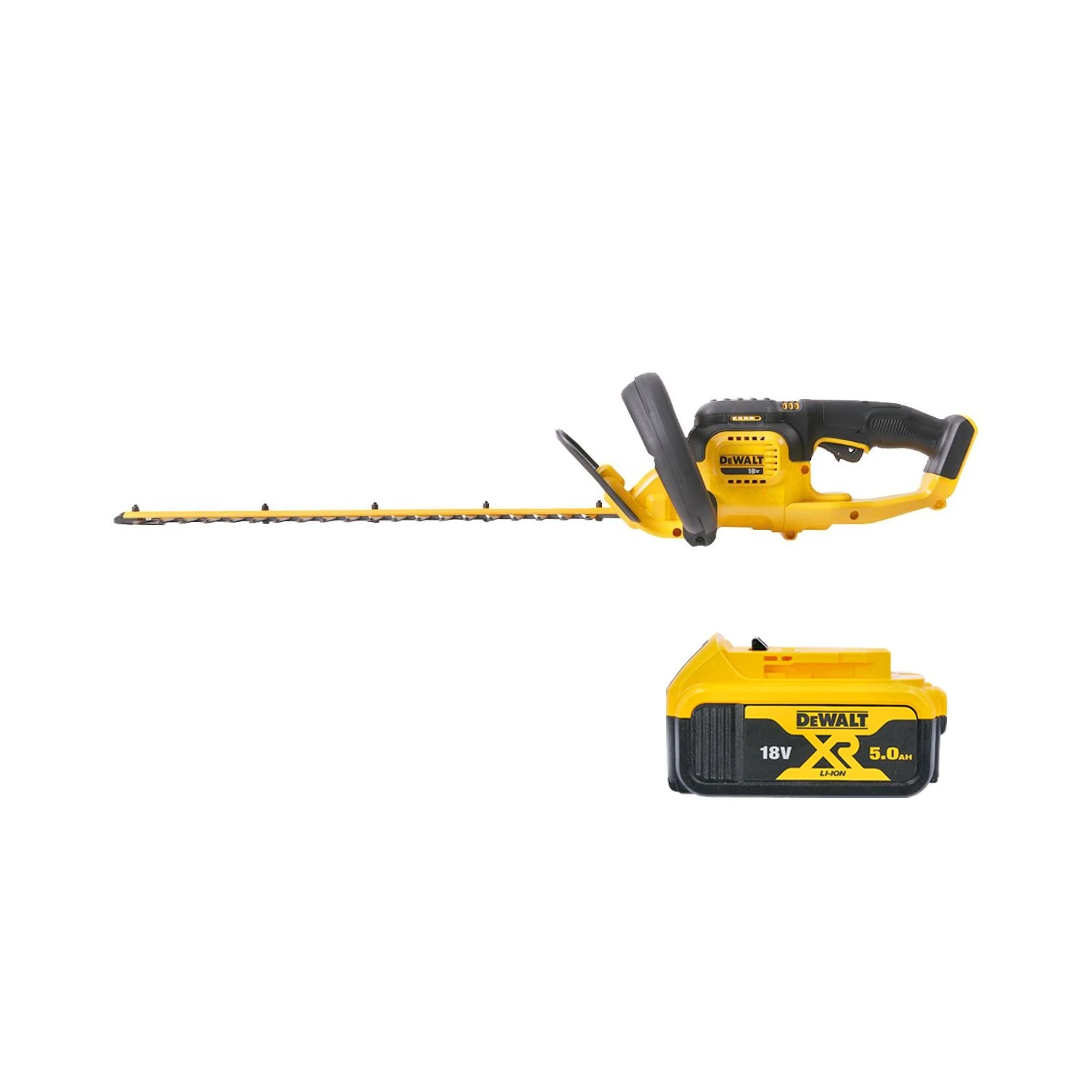 - Dual-action blades: The dual-action, 55cm hardened-steel blades on this 18V hedge trimmer from DeWalt offer a laser-cut, running backwards and forwards for the cleanest, best possible result