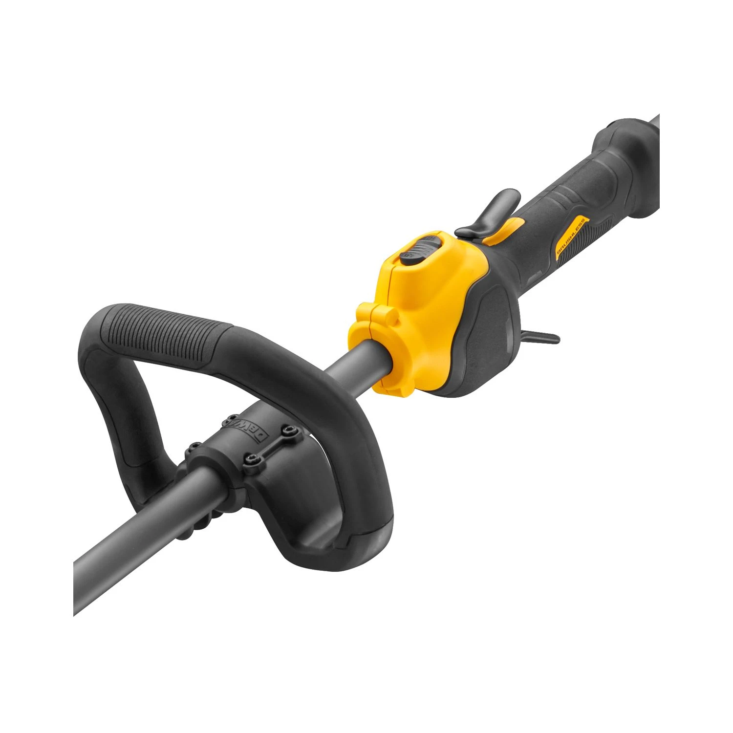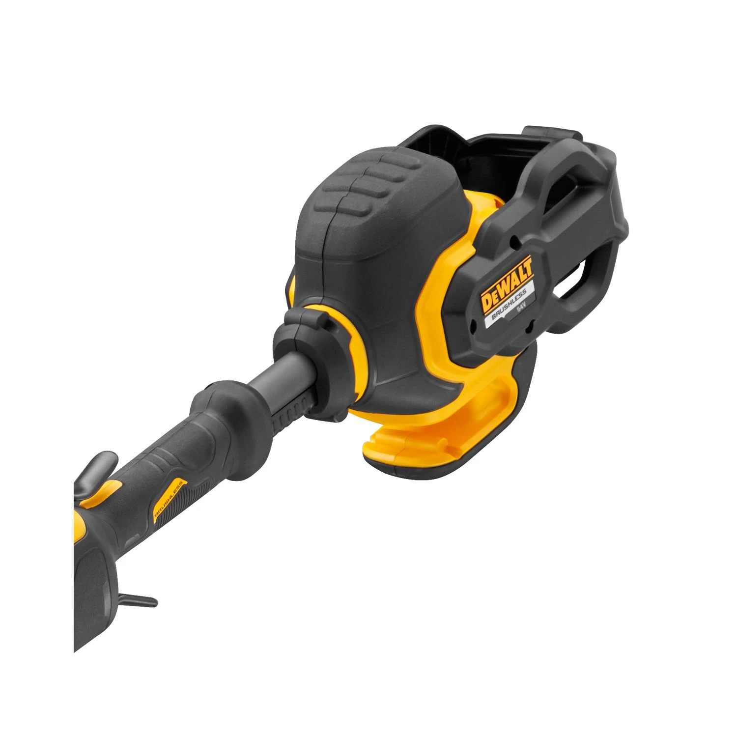 - Safety features: With a hand/arm weighted vibration of only 2.6m/s², the DCM5713N-XJ 54v String Trimmer means reduced danger of vibration-related injury or fatigue. The contoured handles and rubberised handle grips ensure a safe, secure hold, even for long periods.