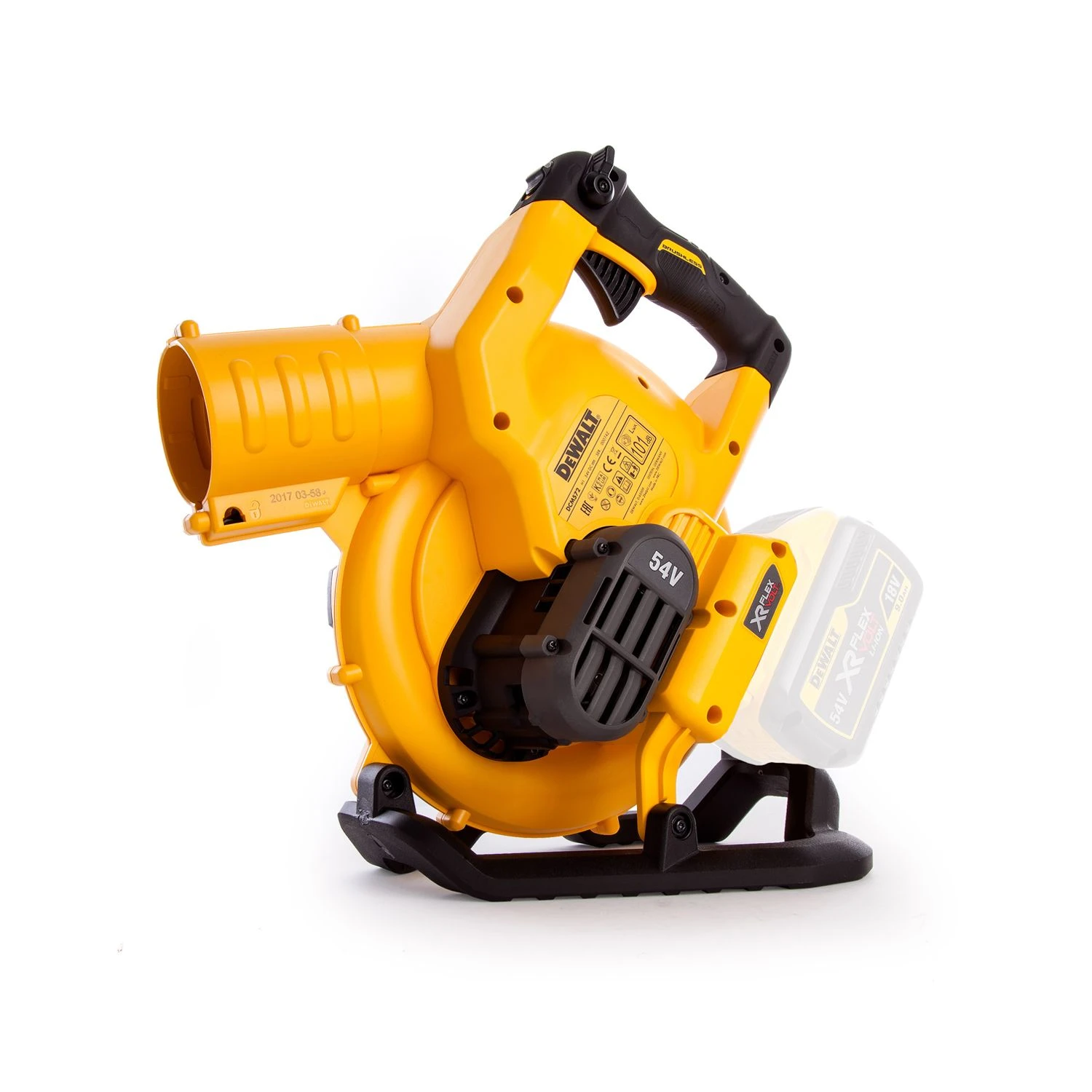 The DCM572 Blower is the first 54V handheld leaf blower offering unrivalled power for a cordless unit. The brushless 54V XR FLEXVOLT motor delivers 400 CFM (cubic Feet per Minute) and more than 193 Kmh air speed. Thanks to the DCM572’s 54V Lithium-ion power source, there is no need for pull cord starts or be exposed to petrol fumes and exhaust gases during use – just pick up and blow. The DCM572 Blower has been designed for comfort and control with features such as the variable speed trigger with lock allowing the user to maintain their chosen power level without having to hold down the trigger, extensive over-mould handle for grip and comfort, plus the curved tube design creates rotational control and reduces fatigue. The DCM572 is the most powerful blower in the DEWALT range and further extends the versatility of your XR FLEXVOLT system.