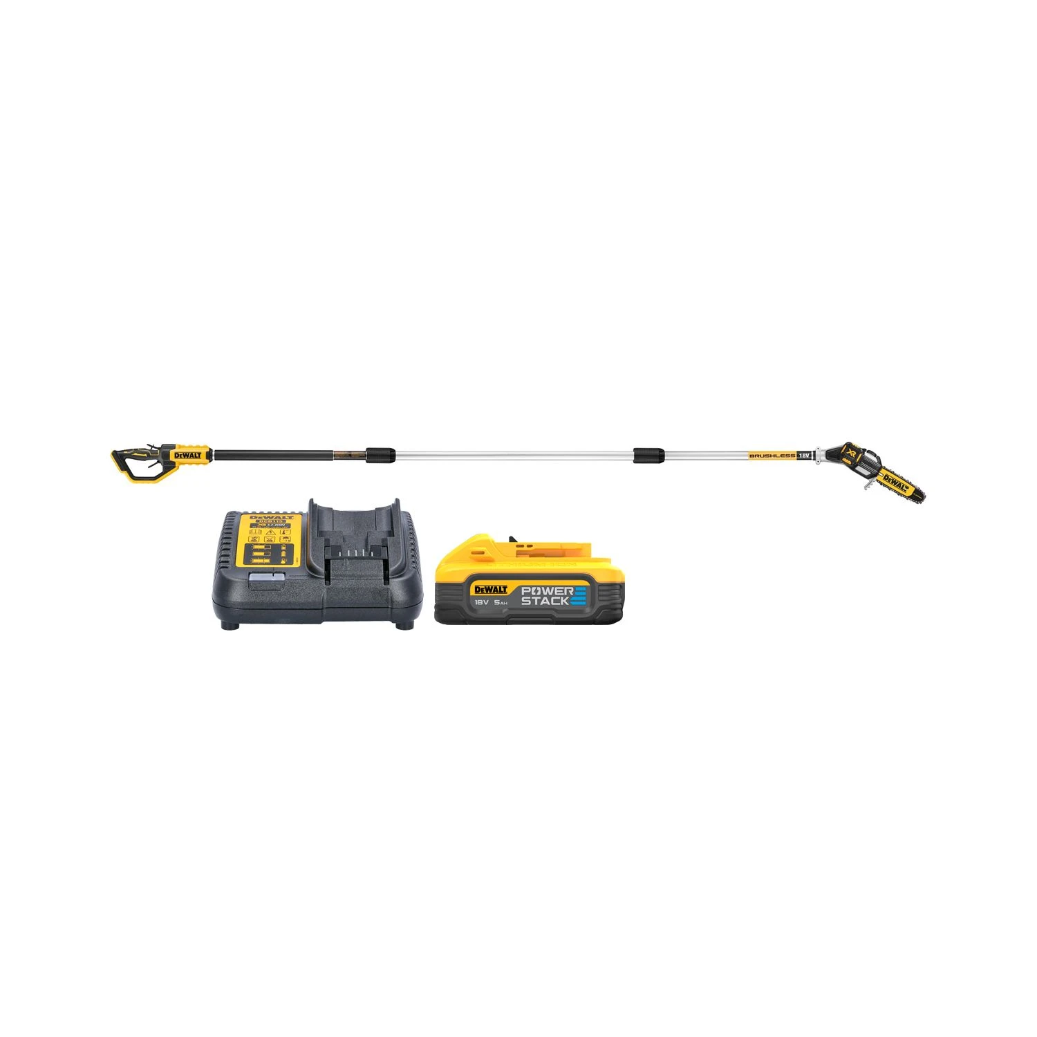 DeWalt DCMPS567 18V XR Cordless Brushless 200mm Pole Saw Wit 1 X 5.0Ah Powerstack Battery & Charger