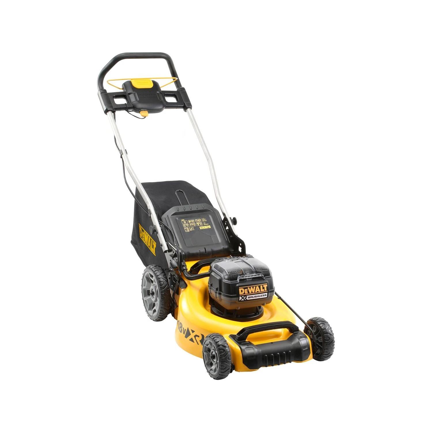 The DeWalt DCMW564RN 18V 480mm XR Brushless Lawn Mower is perfect for professional gardeners, groundskeepers and landscapers. Now with more power and less noise, this lawnmower gets the job done with extra efficiency. The handle is ergonomic in design and ensures easy and comfortable steering with the bottom roller allowing easy and free flowing movement across the ground. It is also now easy to create the striped effect on the lawn and a mulching attachment for lawn fertilization. There are five different high settings and also a 55 litre collection bag reducing the need to empty waste too often. With its brushless motor this lawn mower will last for longer and give you premium performance.