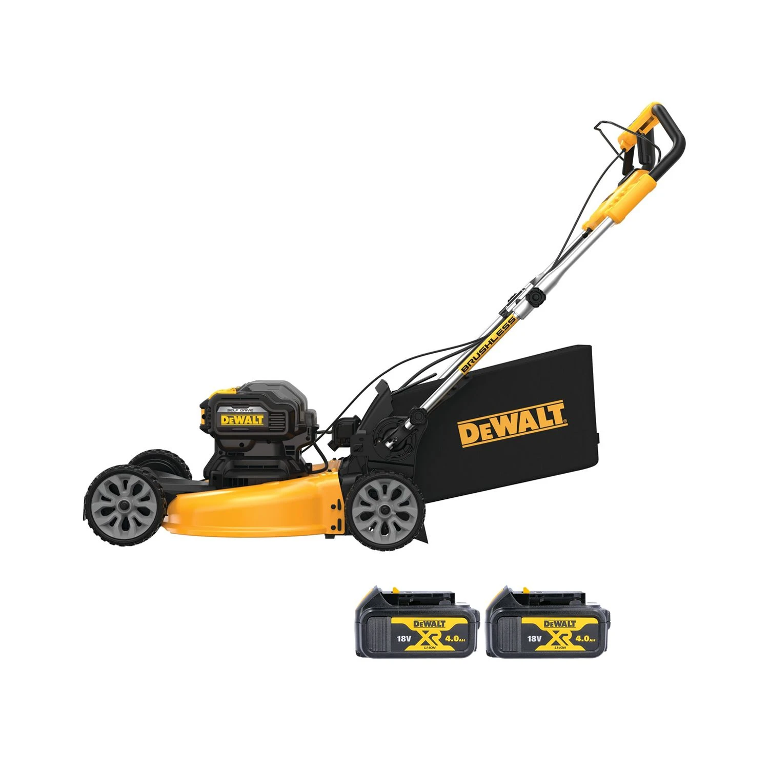 The DeWalt DCMWSP564 is a Self-propelled brushless 53cm lawn mower powered by 2 x 18V XR batteries Brushless 53cm Self-Propelled Lawn Mower. The ideal machine for gardeners and landscapers especially when access to power is limited. Designed for efficient working, the brushless motor provides improved power and run time, the 54cm deck with 53cm blade allows you to cover more area with fewer passes and the large 55L collection bag reduces the downtime of emptying the bag often. Assisted mowing is made possible thanks to the motorised wheels while the ergonomic duel self-propelled grip allows you to work comfortably even for extended periods.