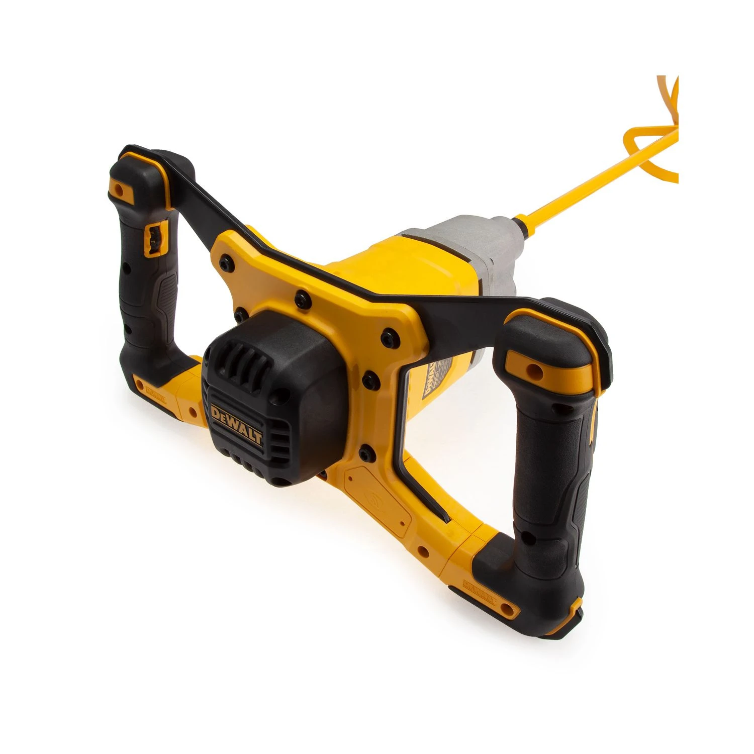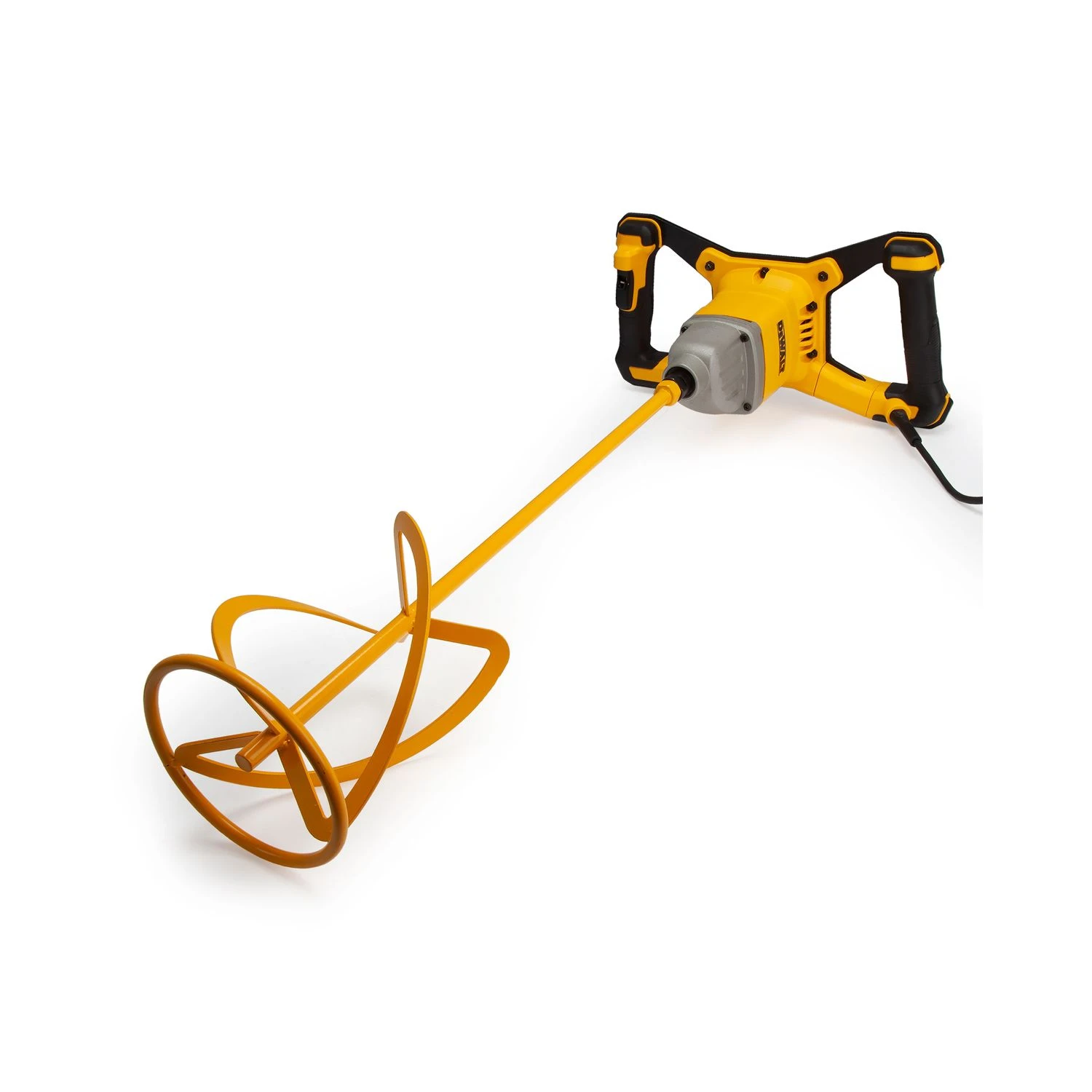 The DeWalt DWD241 is a corded dual-handle paddle mixer for plasterers, landscapers, flooring contractors and general builders. Primarily designed for mixing plaster, it can be used for mixing a variety of materials including tile adhesive, exterior render, mortar/cement mixes, paint and more. The variable speed dial and trigger gives the user precise electronic control of speed from 225 to 725rpm. This allows the user to select appropriate speed for material and control during application.The robust metal roll-cage provides improved durability and minimises risk of broken parts due to knocks and falls. Supplied with a 4 metre power cord to minimise the need for extensions.