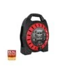 Faithfull Open Drum Cable Reel with twin 240V sockets. The 1.25mm² cable is fitted with a standard 240V plug. For added safety, the reel is fitted with a thermal overload protection system to prevent overheating damaging the cable when in use. The heavy-duty plastic drum is mounted on a sturdy steel frame with a textured grip for user comfort. Complies to BS EN 61242.