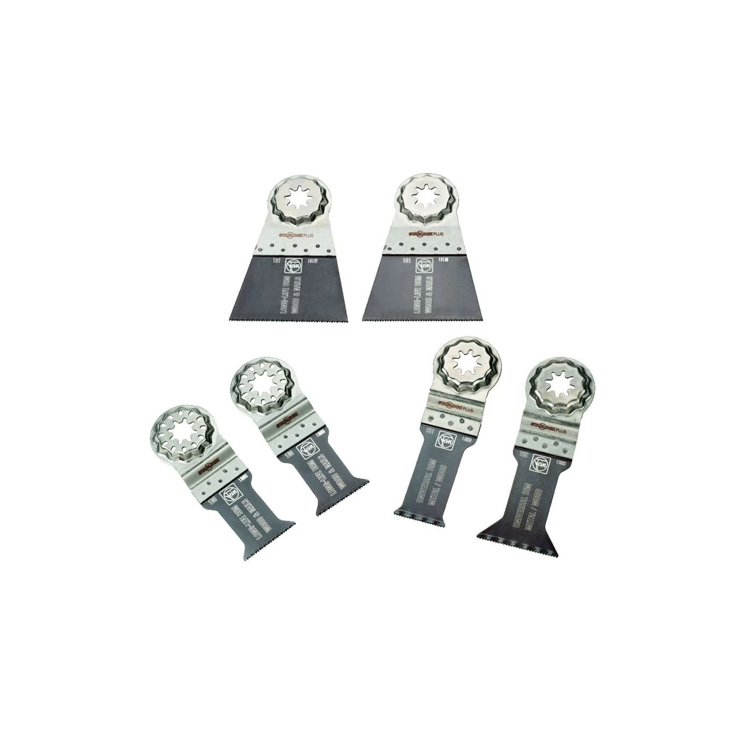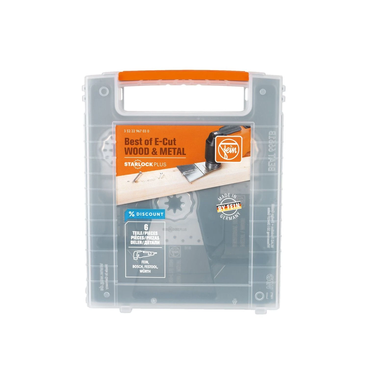 Fein Best Of E-Cut Starlock Plus Wood & Metal Accessories Combo includes 6 E-Cut plunge-cut saw blades for sawing in wood and metal. Suitable for all fein MultiTools and all other common MultiTools with Starlock-Plus and StarlockMax mounting.