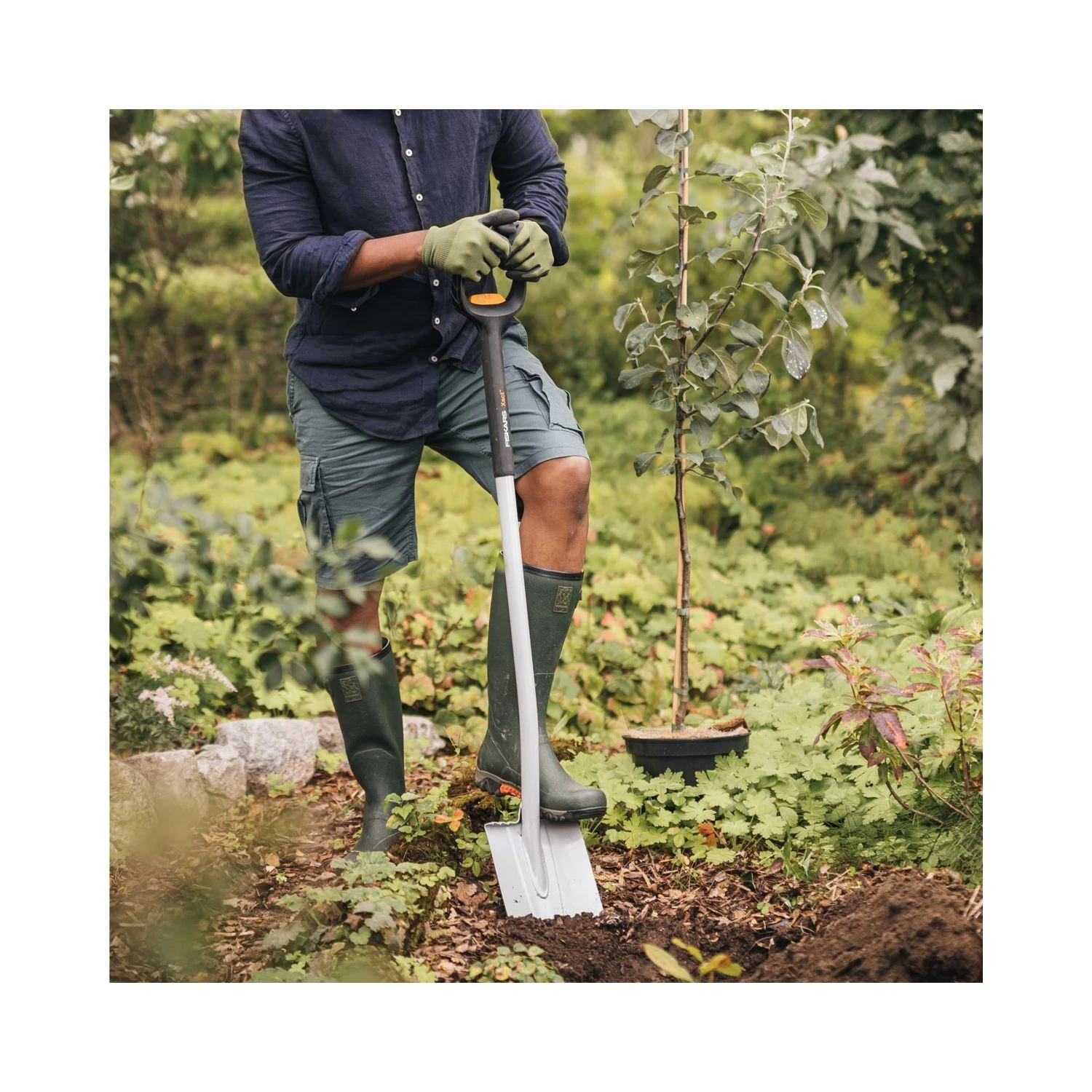The Fiskars Xact™ Telescopic Pointed Spade incorporates innovations which allow you to do more of what you love. Its Boron steel head with a non-slip step board is sharpened on the edge and sides, making it ideal for digging holes, edging beds and removing small amounts of soil.