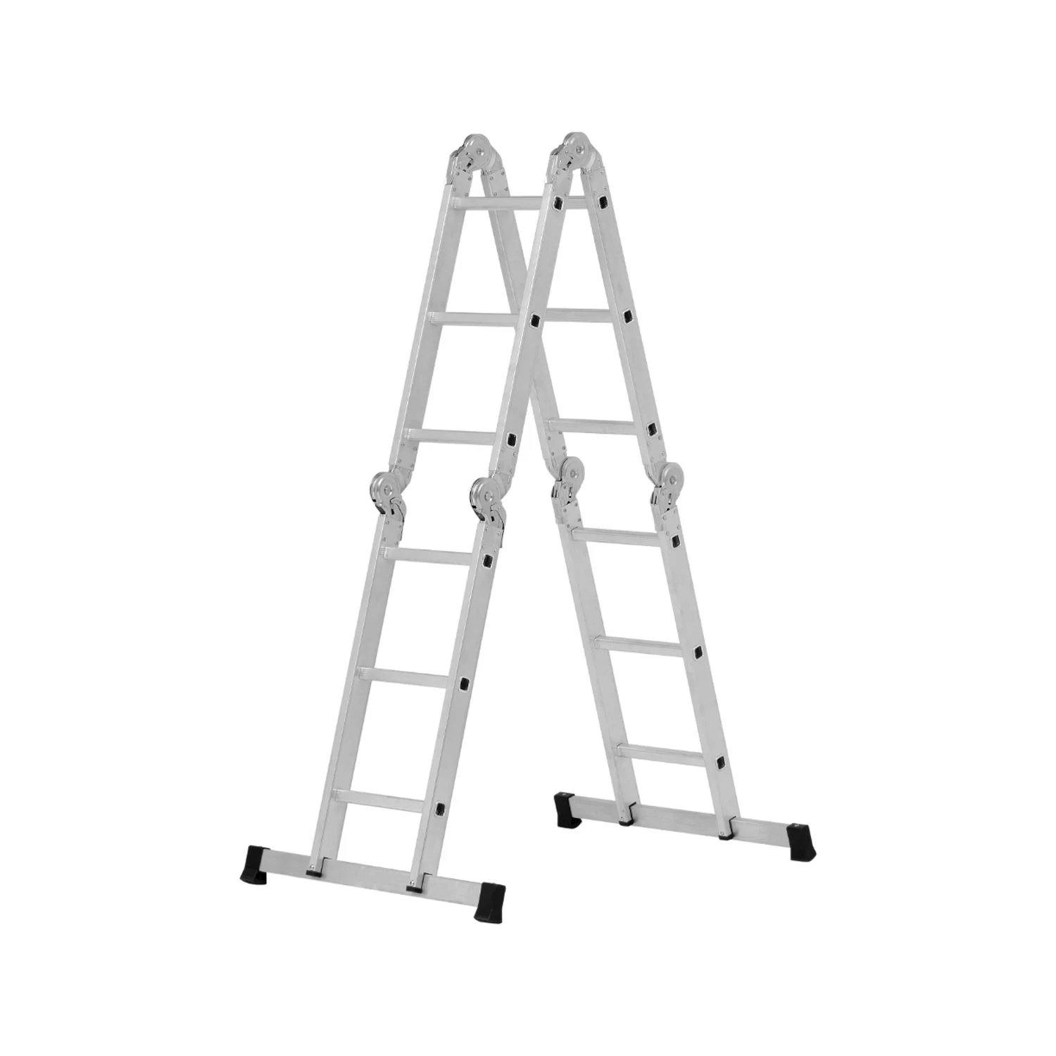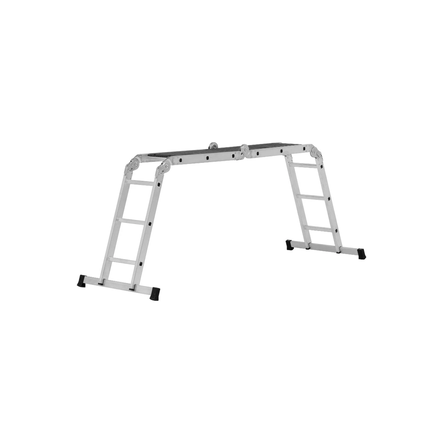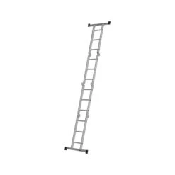 Hymer 41043 multipurpose ladder can be used in five different configurations. Comes with easy clip on standing platform.