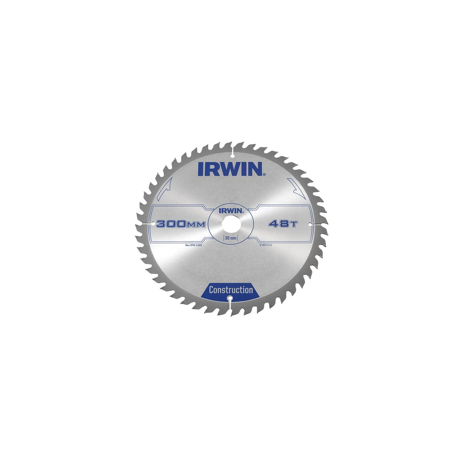 IRWIN General Purpose Table & Mitre Saw Blade with construction grade tungsten carbide tips that retain their edge for longer and are resharpenable. Expansion slots help to dissipate heat and prevent warping. The blades have a fully hardened plate that runs truer for longer and with more accuracy.