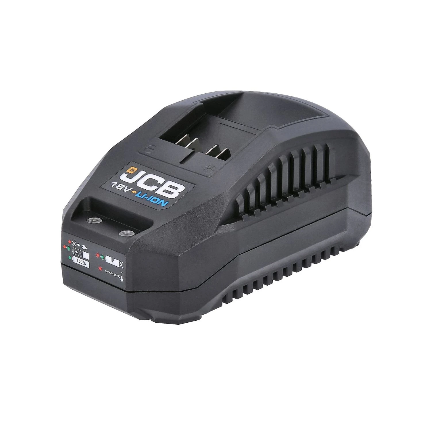The JCB 18V 1.4A Fast Charger is compatible with the JCB 18V Lithium-ion battery. Combined with the right tools and accessories it would be used by a mixture of trade professionals and home DIY users. JCB 18V fast chargers ensure your battery is charged faster than its run time. This gives your battery maximum efficiency. It’s easy to transport alomg side your tools in a bag or box. Once you have found an appropriate source of power to plug in your charger, there should be nothing stopping you creating the master piece that you had planned to build. Charge Time (2.4A Charger): 18V 2.0Ah 50mins, 18V 3.0Ah 80mins, 18V 4.0Ah 100mins, 18V 5.0Ah 120mins.