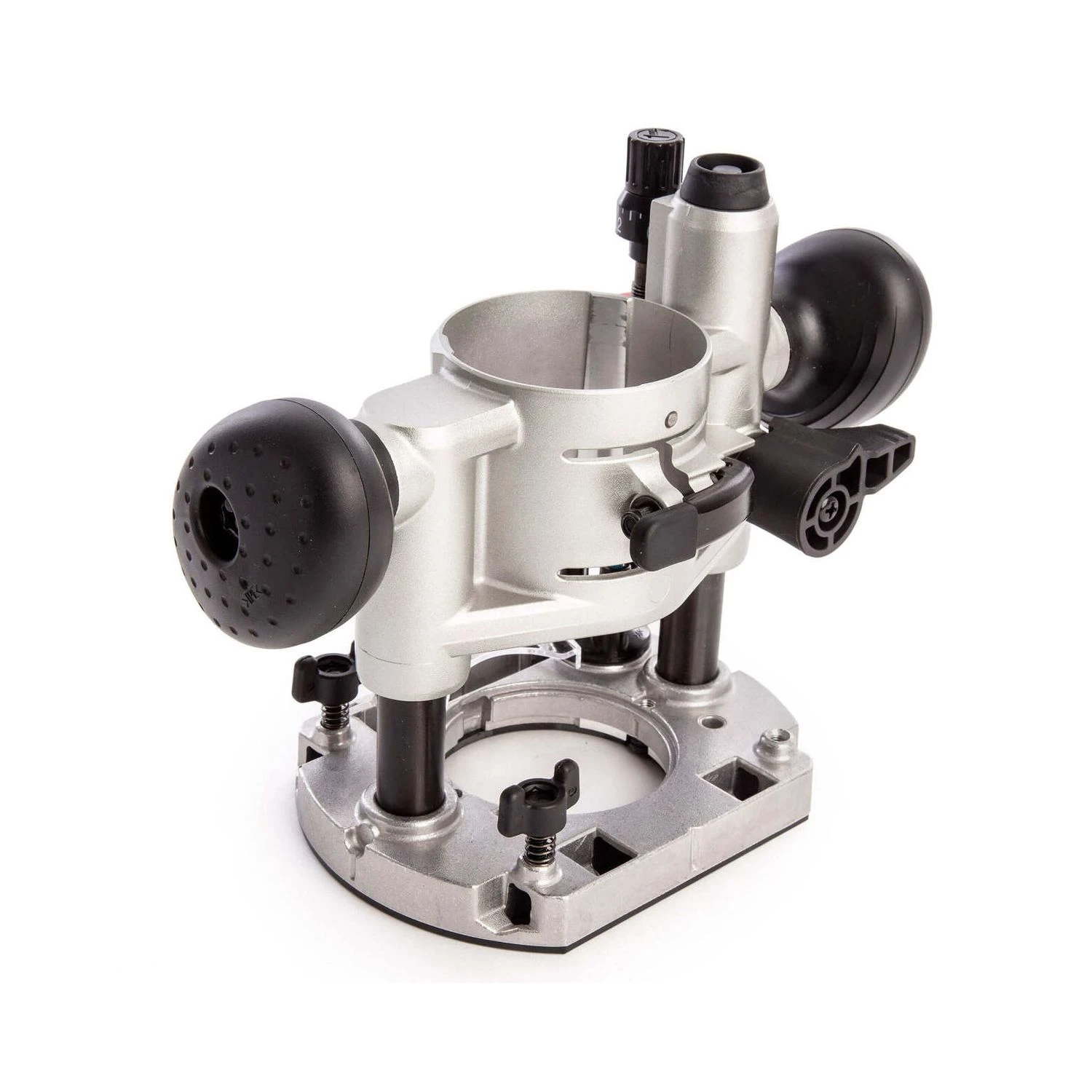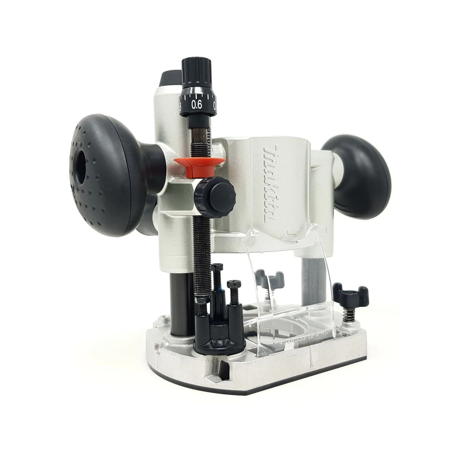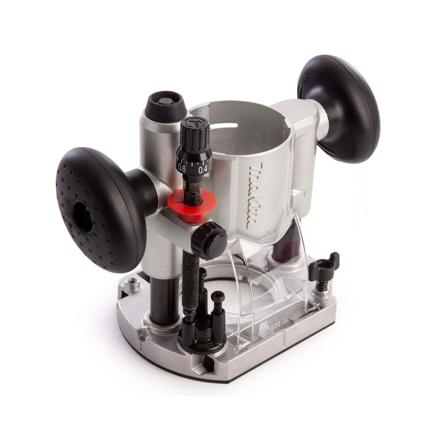 The Makita 195563-0 Plunge Base has a 3-stage precision cutting depth adjustment and a plunge capacity of 0-35mm. It has an easy-to-operate lock lever, rubberised soft grip and a replaceable, non-marring plastic base plate for protection and smooth sliding on the work piece.