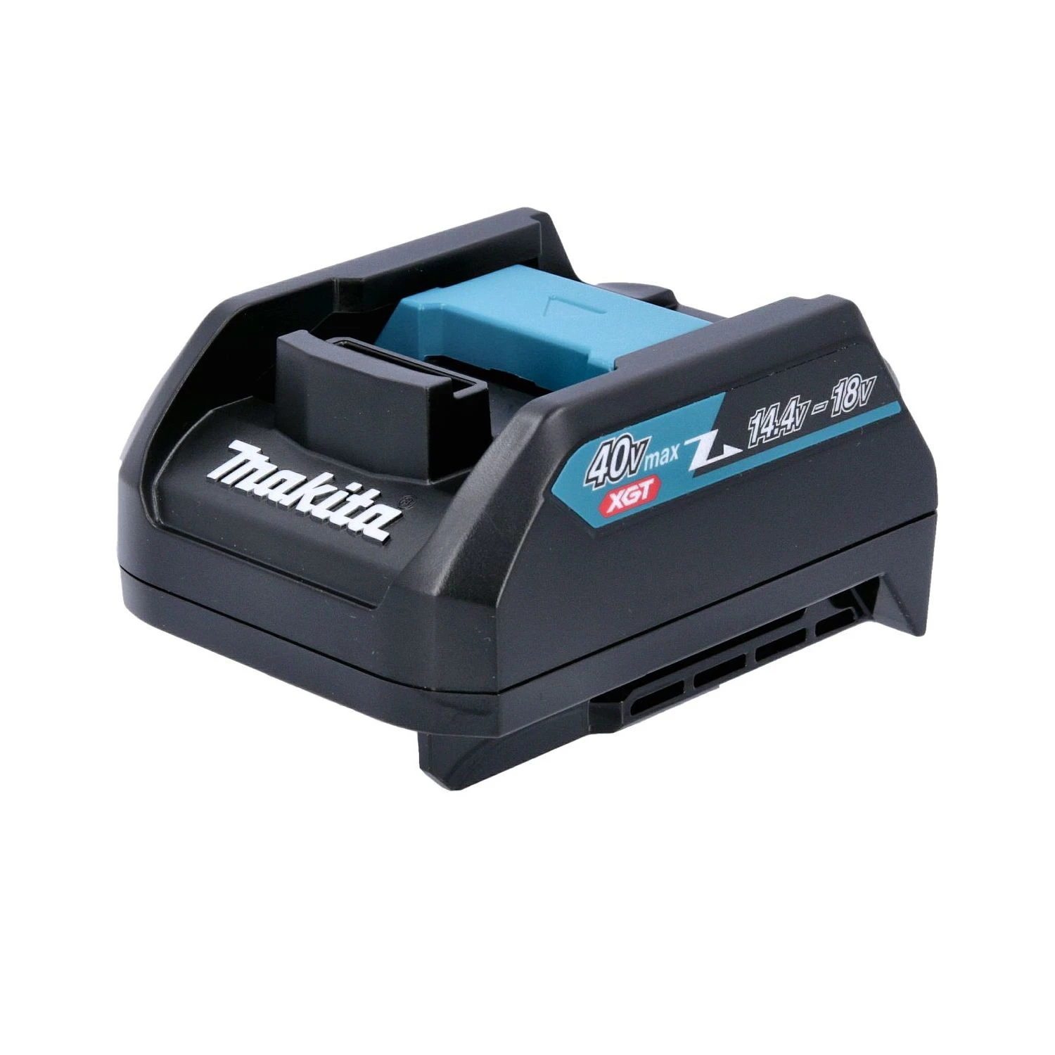 The Makita DC40RA compact fast charger is specially developed for XGT 40v Max lithium-ion batteries, however with this ADP10 charging adapter, the charger is also suitable for fast charging LXT 14.4v and 18v LXT batteries. The charger is also equipped with two fans: one for forced cooling of the battery and one for cooling the charging circuit. Combining these techniques prevents high temperatures in the battery and charger, extending the life of the battery andsignificantly accelerating the charging process. Result: an optimal loading system.