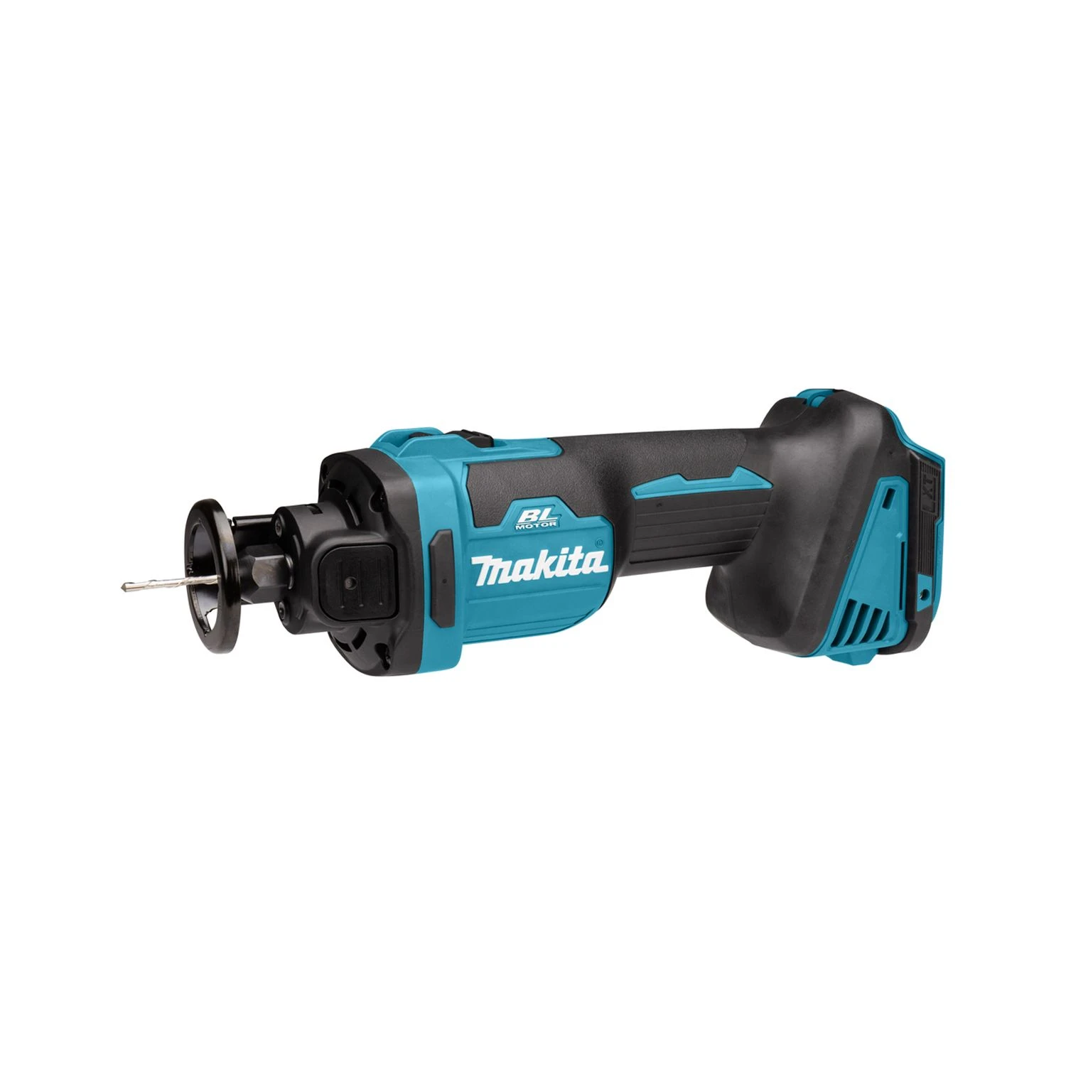 The Makita DCO181Z 18V Drywall Cutter is an ideal cutter for trade professionals as well as DIY enthusiasts thanks to its sheer power and durability. It has been designed with a Brushless Motor to ensure long tool life and gives it the ability to maintain maximum when working under load. The electric brake is ideal for giving the user maximum control and optimal safety when using the tool. Its integrated LED job light makes childs-play of working in low lighting areas and it has a soft start feature to make a smooth finish and to reduce errors. The high power it provides makes it versatile and ideal for many different applications. It has the innovative AWS, auto-start wireless system, meaning it can connect to compatible dust extractors with Bluetooth. This Drywall Cutter is supplied with a collet cone, a drywall guide tip bit and a wrench.