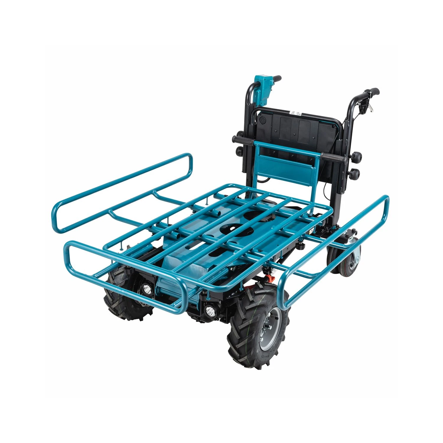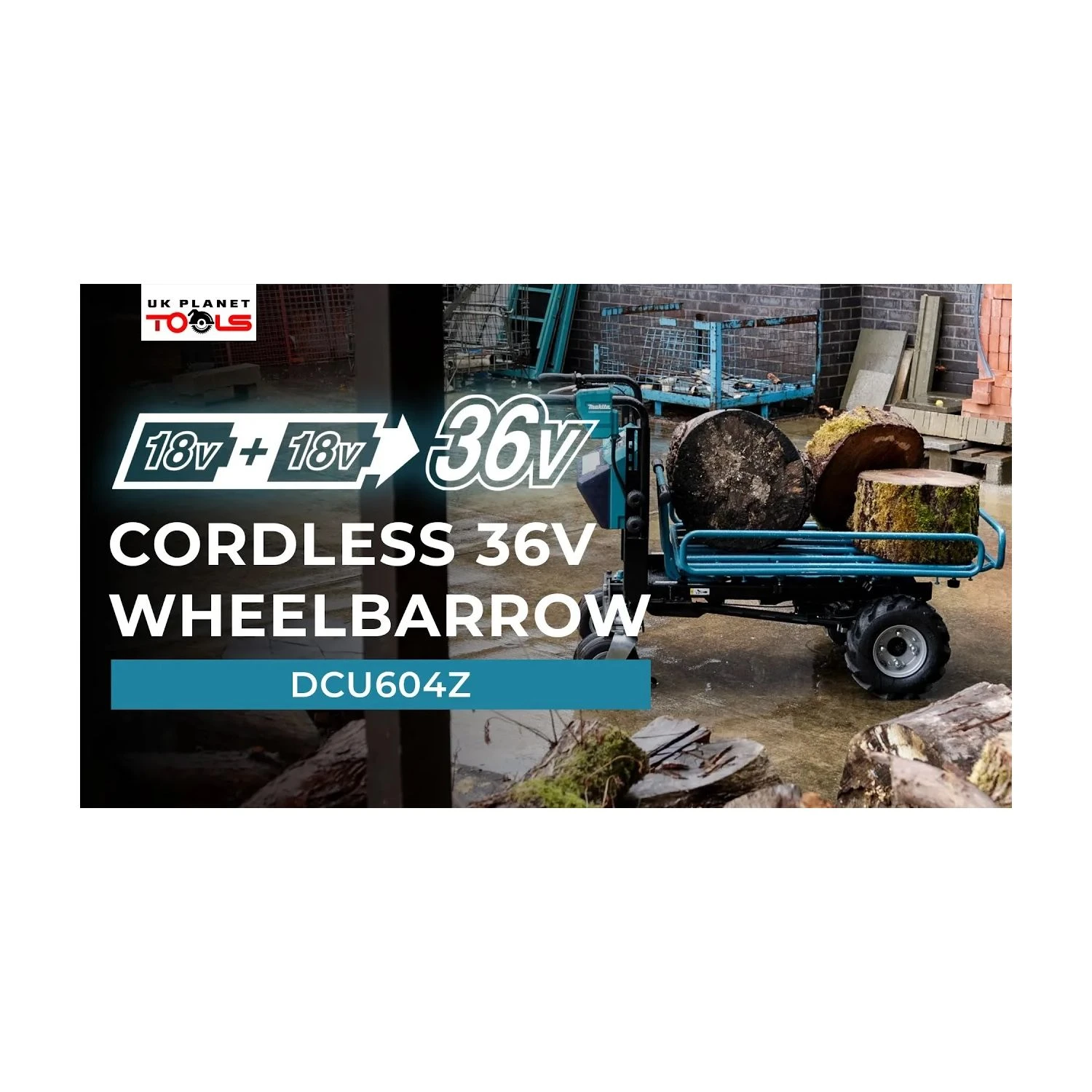The Makita DCU604Z 36V 33kg Max Load LXT Wheelbarrow Bare Unit. For any professional tradesperson this machine will allow you to transport large quantities of materials easily and safely. Because this is battery operated it takes the load off of you when transporting items and it can take up to 300kg. Not only this but if you need to go up slopes then this can safely transport 180kg of materials on inclines up to 12°.