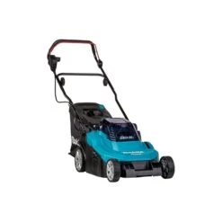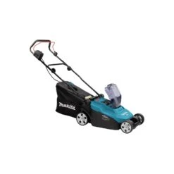 The Makita DLM382 36V 32cm Lawnmower is ideal for professional gardeners, landscapers and grounds keepers. This mower is recommended for lawns up to 560m². The lawnmower is powered by two 18 volt Li-ion batteries in series to supply energy to the powerful 36 volt DC motor driver system. The machine is convenient to use with the single lever cutting height adjustment and grass level indicator on the grass box. The rubberised handle bar ensure that the mower is comfortable to use even for extended periods.