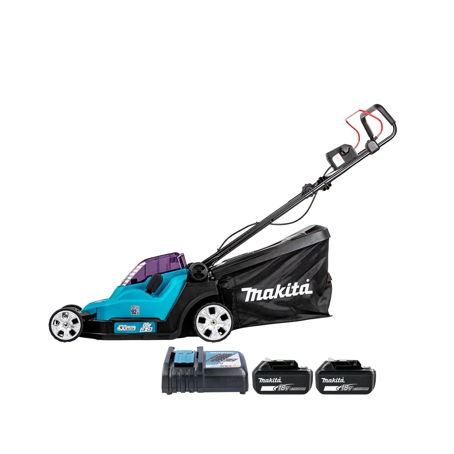 The 18V X2 (36V) DLM432 Cordless Makita Lawn Mower is a welcome solution for efficient grass cutting. It’s powered by two 18V LXT batteries for maximum power and run time.