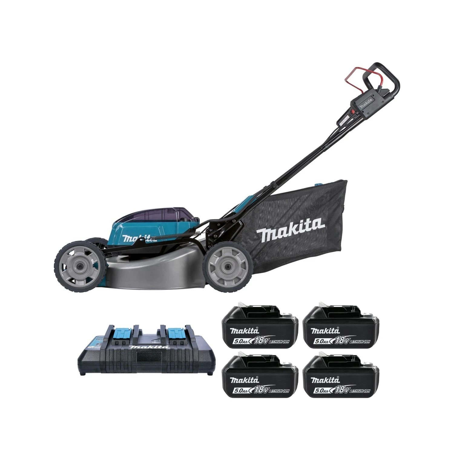 The Makita DLM530 Brushless LXT push type Lawn Mower is powered by two 18V LXT Li-ion batteries in series to give you a 36V power machine. Recommended for lawns up to 2,300m², this is an ideal lawn mower for landscapers, groundskeepers and professional gardeners. The lawn mower although powered by two 18V batteries, it is equipped with four battery ports. A manual switch allows you to select which pair of batteries to use, reducing down time when waiting to recharge and switch over batteries. The mower is designed for a robust long service life. With a steel cutting deck and built-in ball bearings on axles for added durability.
