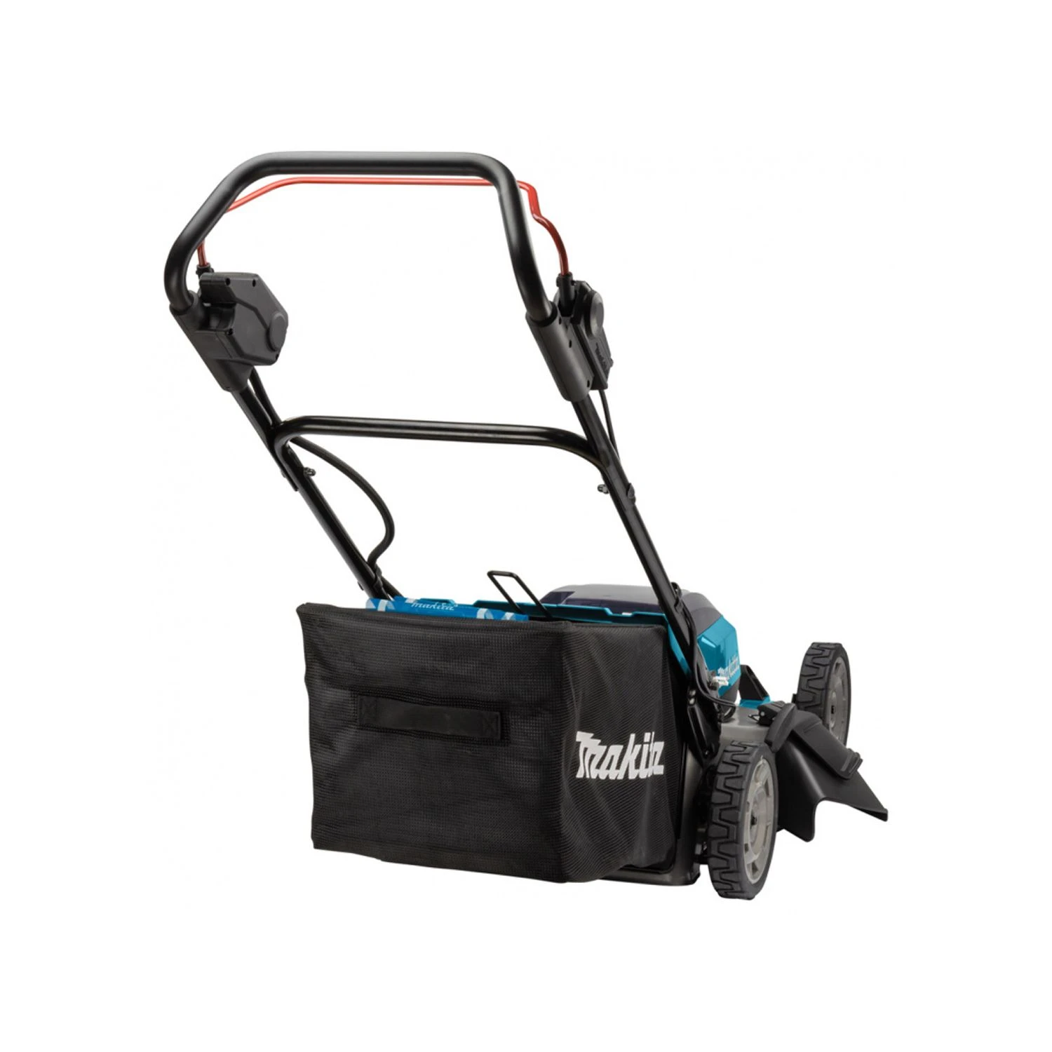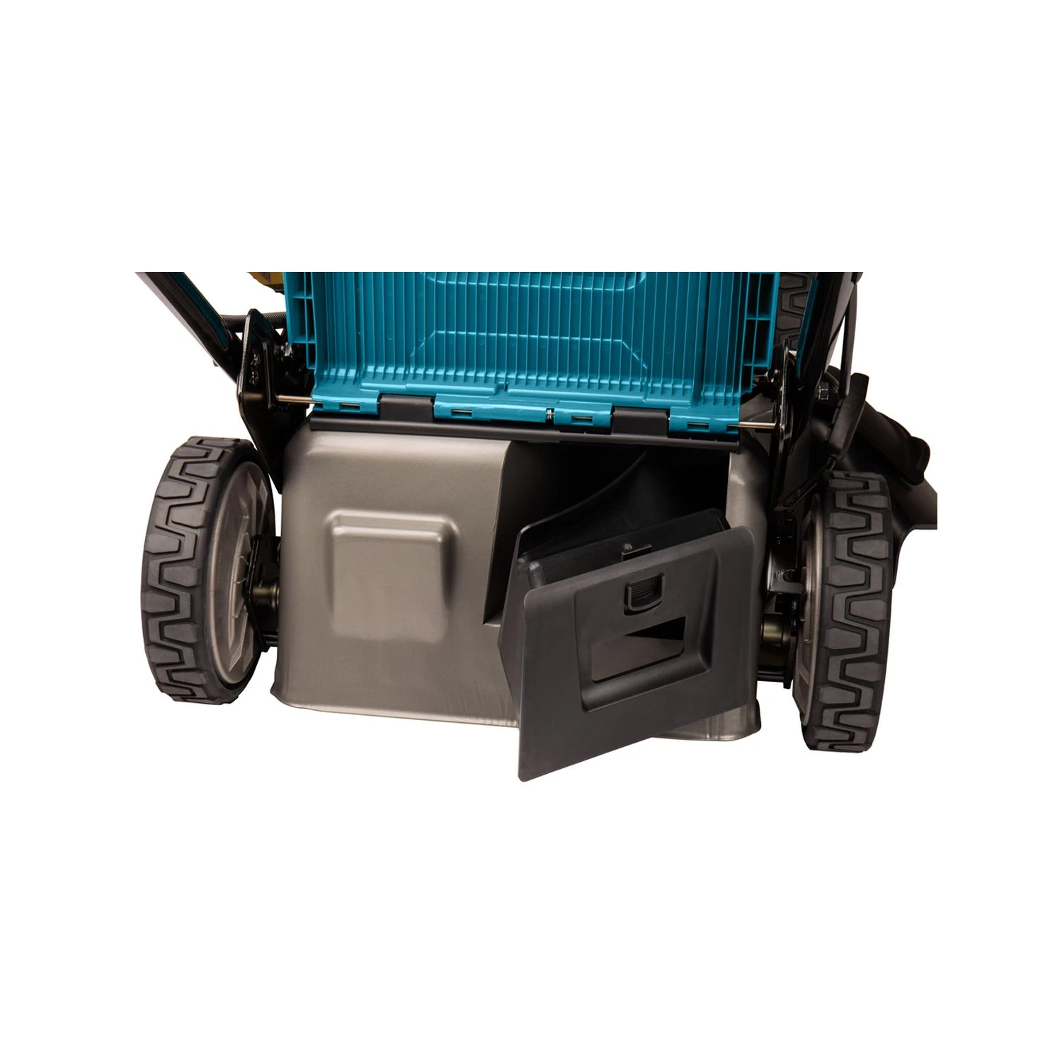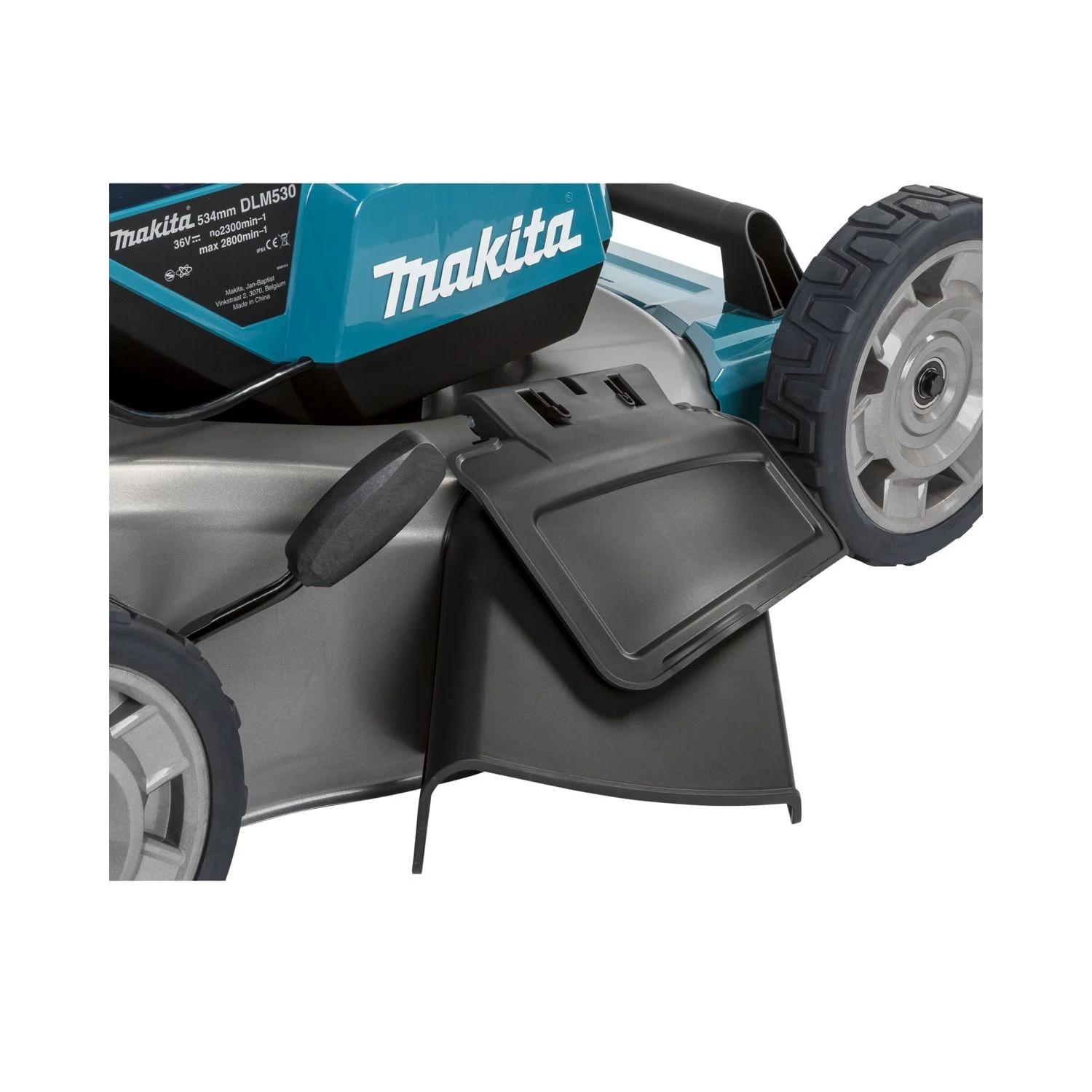 The Makita DLM530 Brushless LXT push type Lawn Mower is powered by two 18V LXT Li-ion batteries in series to give you a 36V power machine. Recommended for lawns up to 2,300m², this is an ideal lawn mower for landscapers, groundskeepers and professional gardeners. The lawn mower although powered by two 18V batteries, it is equipped with four battery ports. A manual switch allows you to select which pair of batteries to use, reducing down time when waiting to recharge and switch over batteries. The mower is desinged for a robust long service life. With a steel cutting deck and built-in ball bearings on axles for added durability.