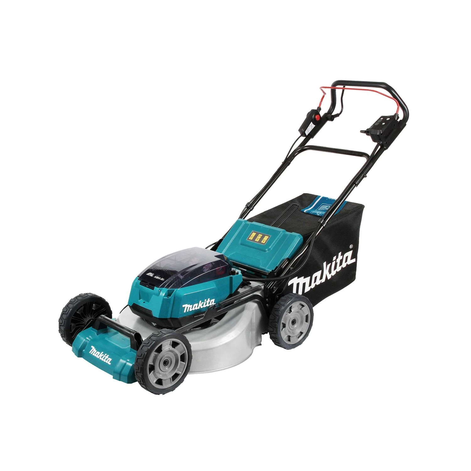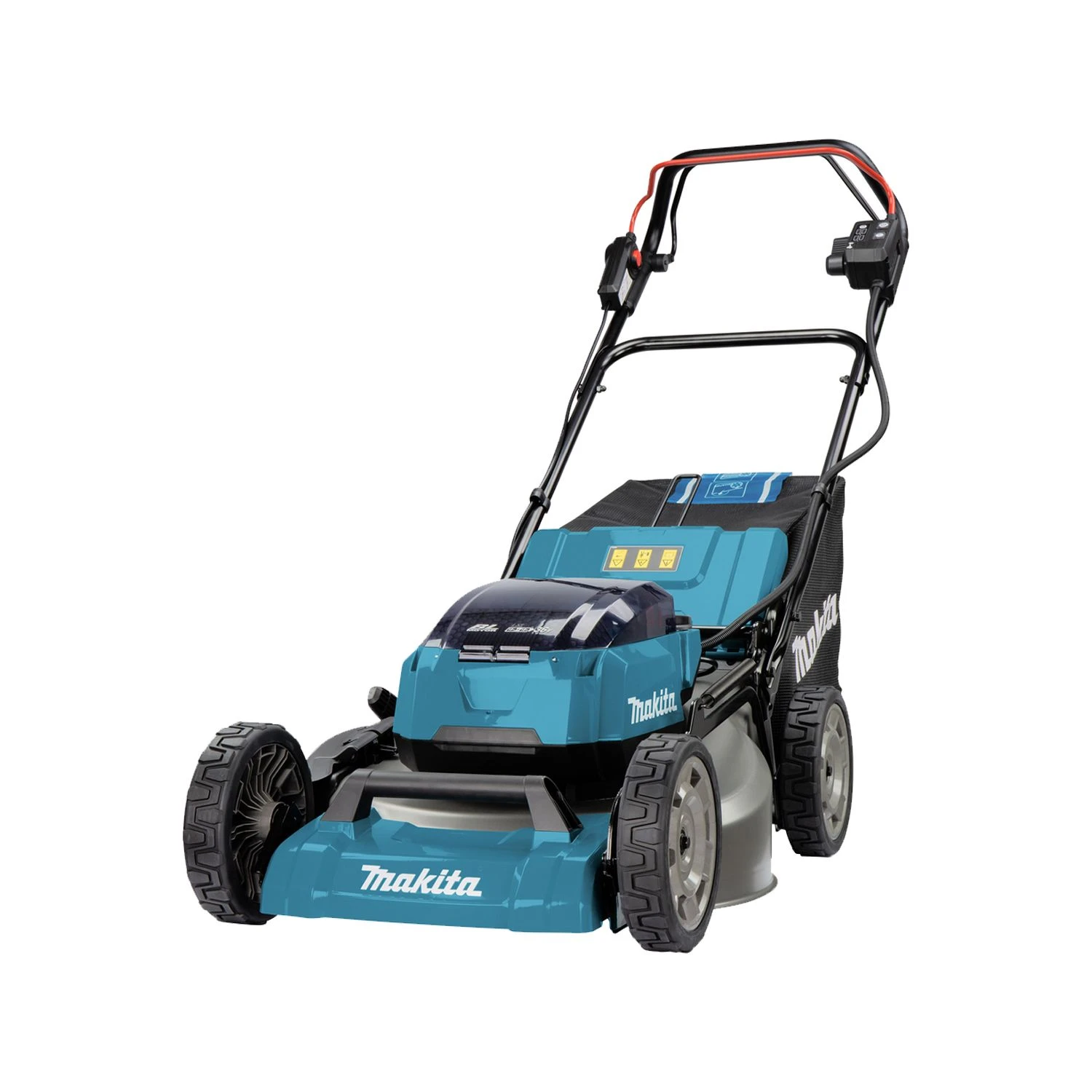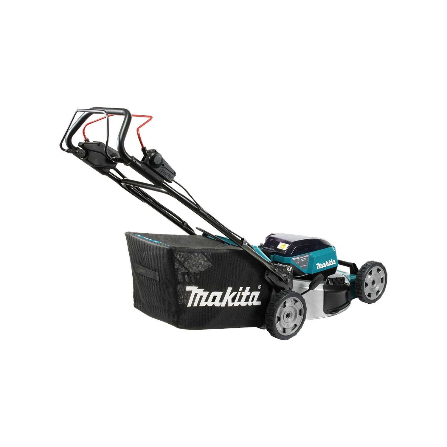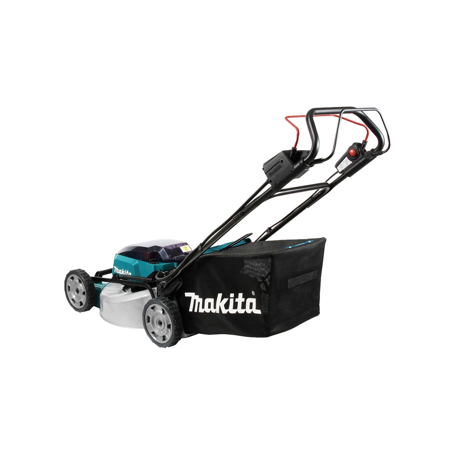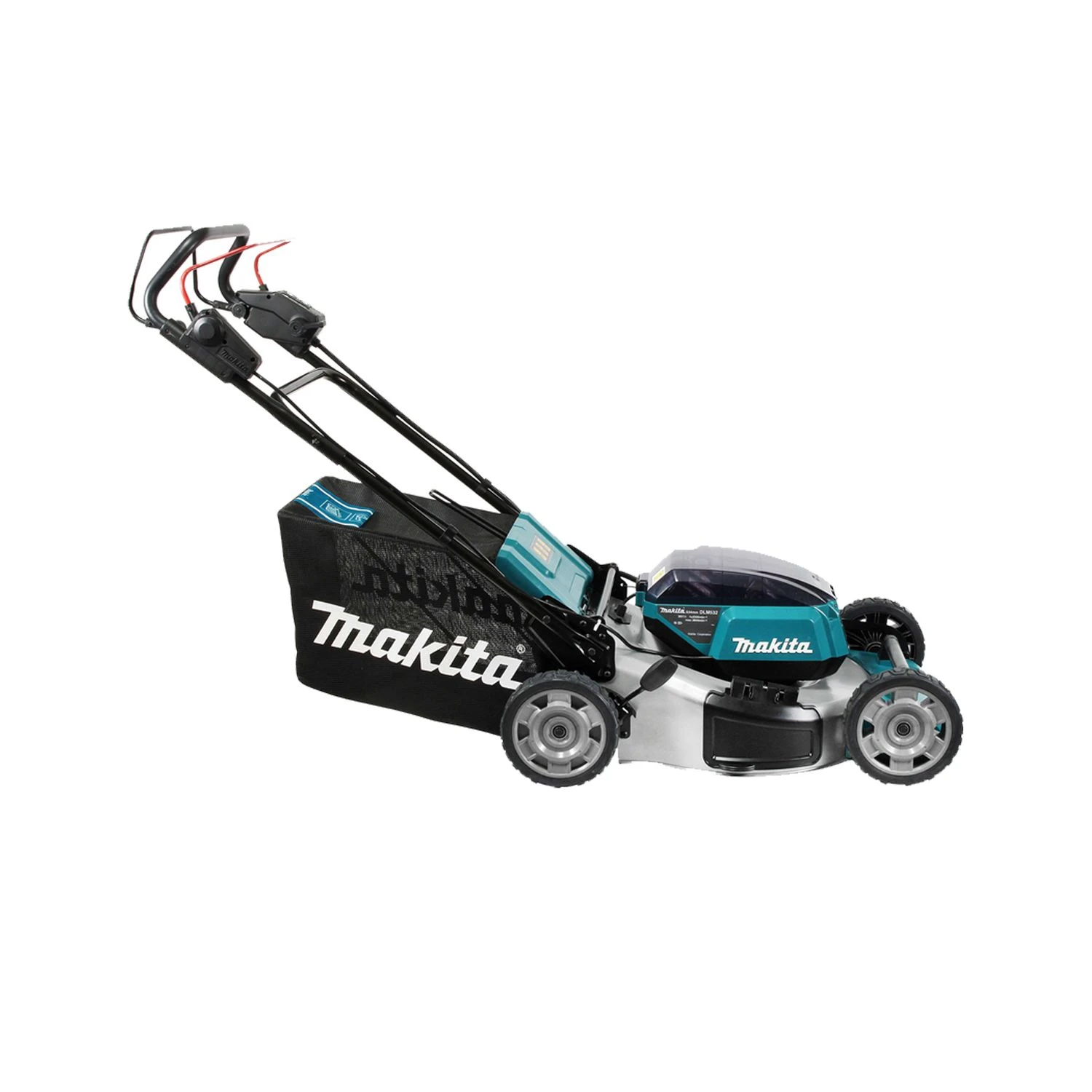 The Makita DLM532 Brushless LXT self propelled Lawn Mower is powered by two 18V LXT Li-ion batteries in series to give you a 36V power machine. Recommended for lawns up to 2,300m², this is an ideal lawn mower for landscapers, groundskeepers and professional gardeners. The self-propelled function can be switched on or off. The lawn mower although powered by two 18V batteries, it is equipped with four battery ports. A manual switch allows you to select which pair of batteries to use, reducing down time when waiting to recharge and switch over batteries. The mower is designed for a robust long service life. With a steel cutting deck and built-in ball bearings on axles for added durability.