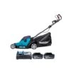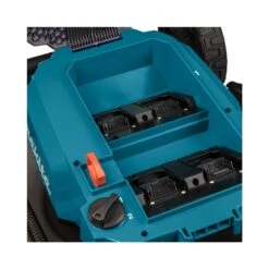 The Makita DLM532 36V LXT Brushless Lawn Mower Bare Unit. This is powered by two 18V LXT Li-ion batteries to give you a 36V power machine. Recommended for lawns up to 1,900m², this is an ideal lawn mower for landscapers, groundskeepers and professional gardeners. The self-propelled function can be switched on or off. The lawn mower although powered by two 18V batteries, it is equipped with four battery ports. A manual switch allows you to select which pair of batteries to use, reducing down time when waiting to recharge and switch over batteries. The mower is designed for a robust long service life and has a a steel cutting deck and built-in ball bearings on axles for added durability.