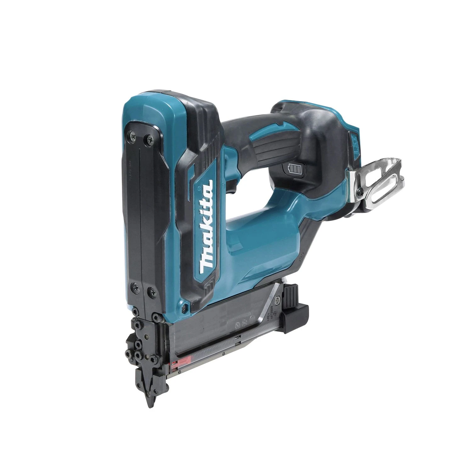 The Makita DPT353Z 18V Li-ion LXT 23G Pin Nailer is the ideal tool for professional roofers, carpenters and upholsterers. The anti-dry-fire mechanism stops the nailer from firing when the magazine is empty which ensures the tool has a longer life. Adjusting the depth is easy and it has a low noise K factor of 3 dB(A). Relatively quiet and efficient, this nailer is also comfortable to use thanks to its ergonomic grip. When working in dimly lit conditions the LED light illuminates the workpiece for accurate and safer working.