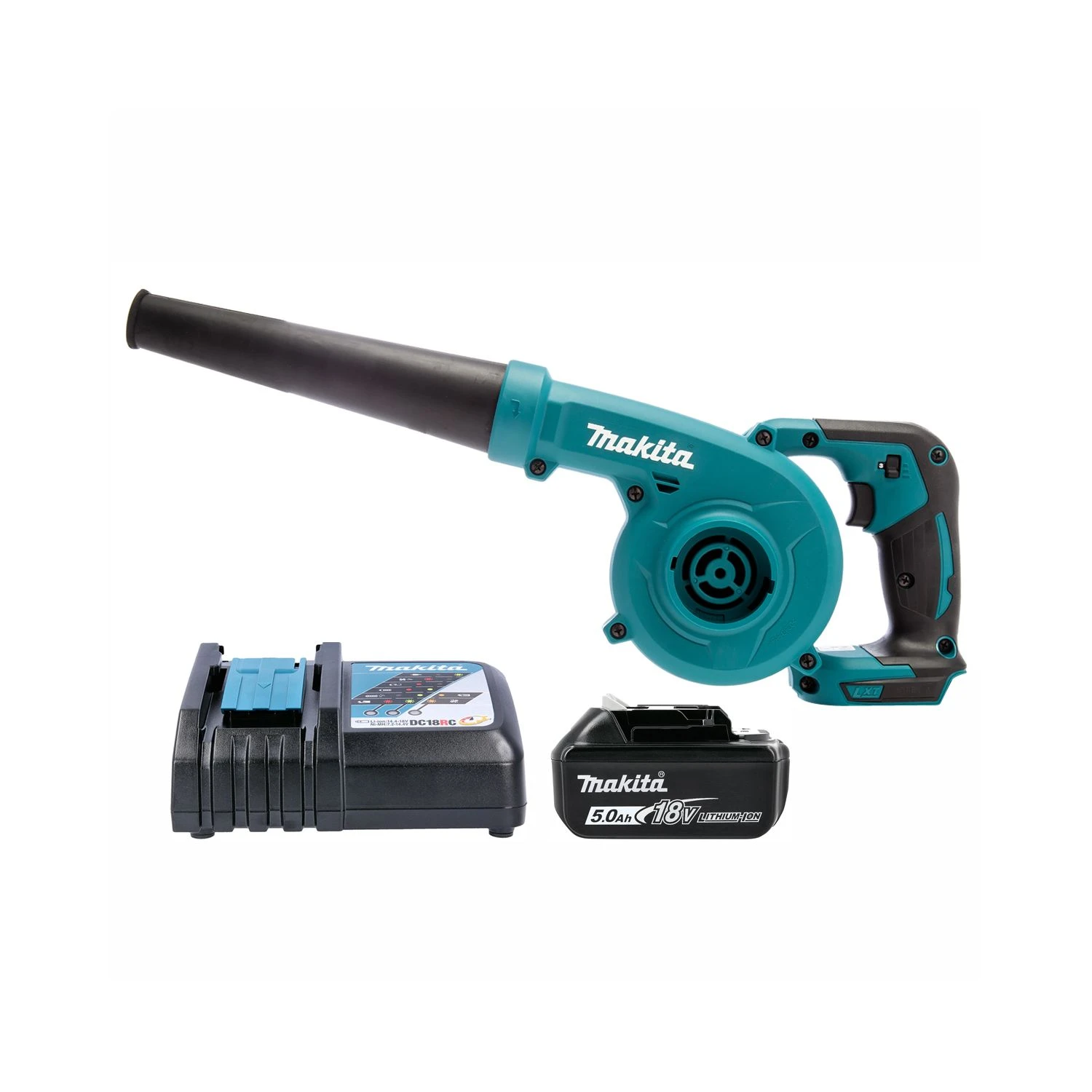 The Makita DUB185RT is a Blower powered by an 18V Li-ion LXT slide type battery. The machine has 3 air volume settings for low, medium and high, with a variable speed which is fine-tuned by the trigger. This can deliver up to 18,000 rpm, 98 metres per second maximum air velocity. The DUB185 can be changed to a vacuum with 5.8 kPa maximum sealed suction for a faster clean up. It becomes a vacuum by attaching the blower nozzle on the side and using a dust bag (not supplied).