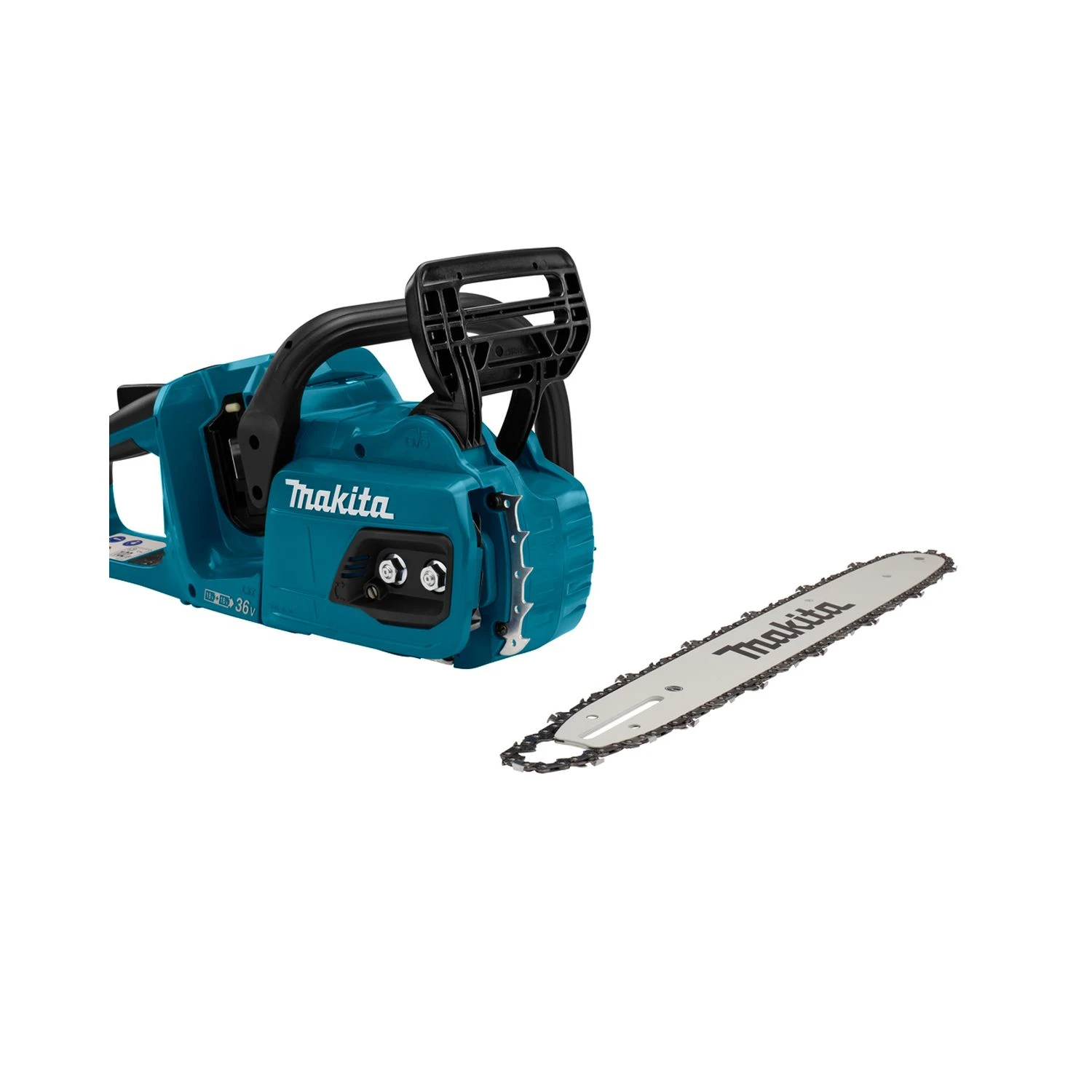 The Makita 18Vx2 400mm LXT Li-Ion BL Chainsaw Kit DUC405PG2 is ideal for professional and DIY use due to its sheer power and durability. This chainsaw features a main power switch with auto power-off function, helping to avoid unintentional startups, this provides added safety for the user and for the environment in which it is being used. The main power switch also automatically shuts down when the trigger is not pulled for a certain period. The captive nuts feature prevents loss of nuts when removing the sprocket cover to replace the guide bar or saw chain, in turn, increasing the productivity of your day and reducing the need of having to buy spare parts.