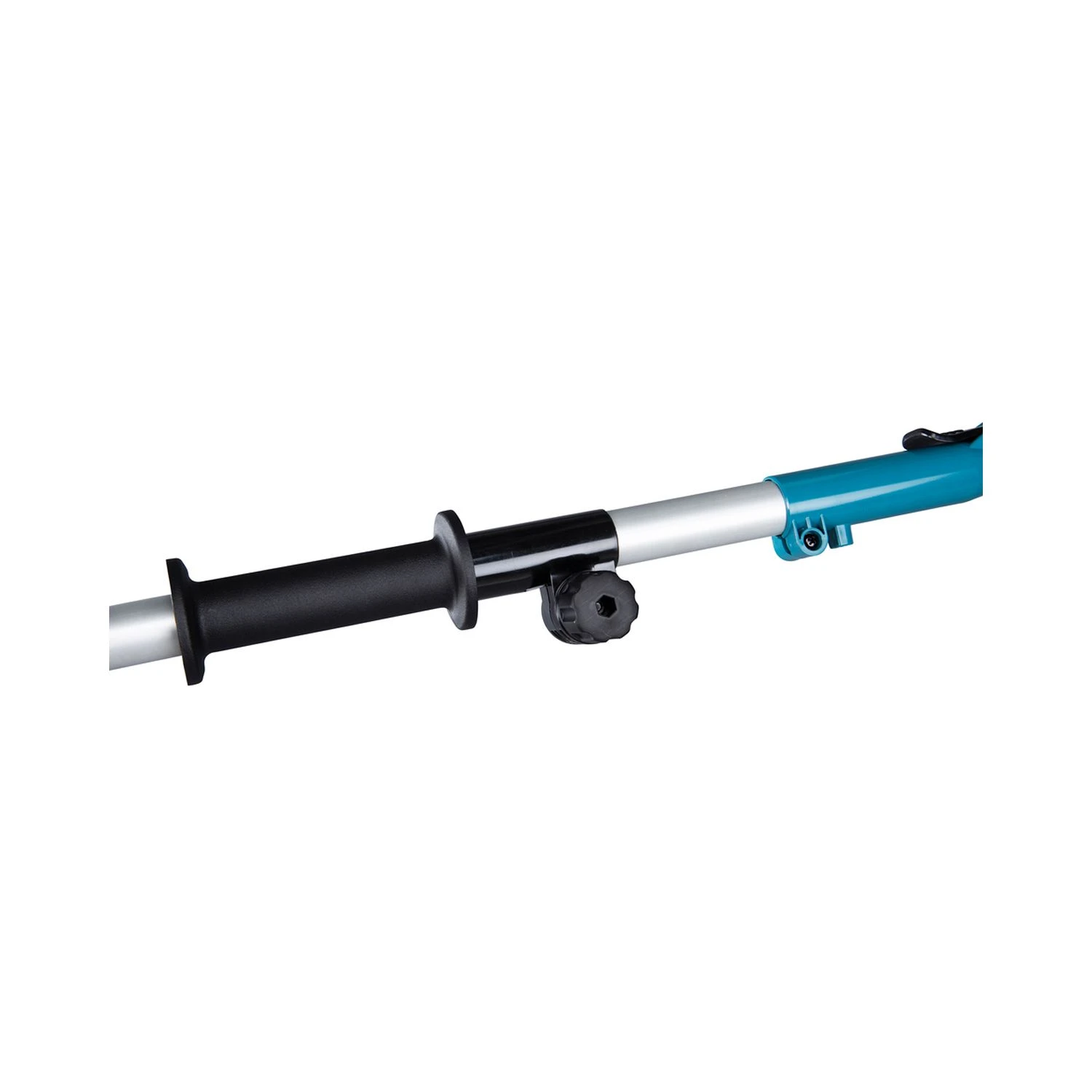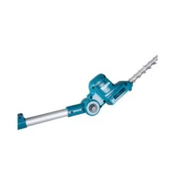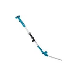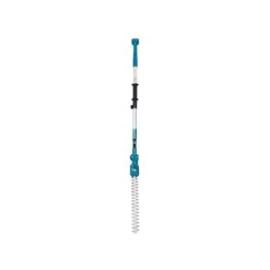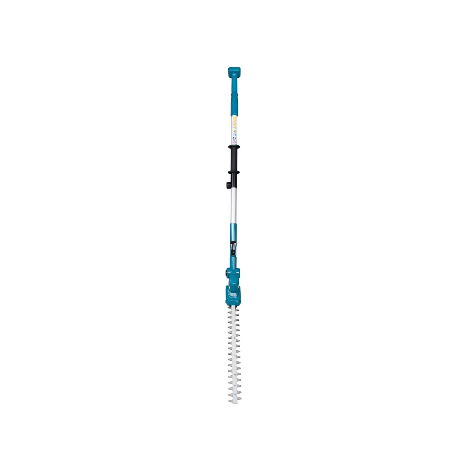 The Makita DUN461WZ 18V 46cm LXT Pole Hedge trimmer has an adjustable head that can tilt 60° up and 75° down. It features ten angle settings that can be activated and changed with a simple button push. The pipe is telescopic and allows the shaft length to e fully adjusted as required. The lock lever enables the adjustment of the pole extension to be completed without the need for tools. The slide-type front grip position can be adjusted for comfort and to improve efficiency whilst working in different positions and postures. When the tool is jammed by thick branches, the reverse rotation system can free the blade easily and swiftly. It has low noise and vibration emissions, with a lock-off function and a high cutting speed for efficient and smooth cutting. Ideal for DIY and professional users.