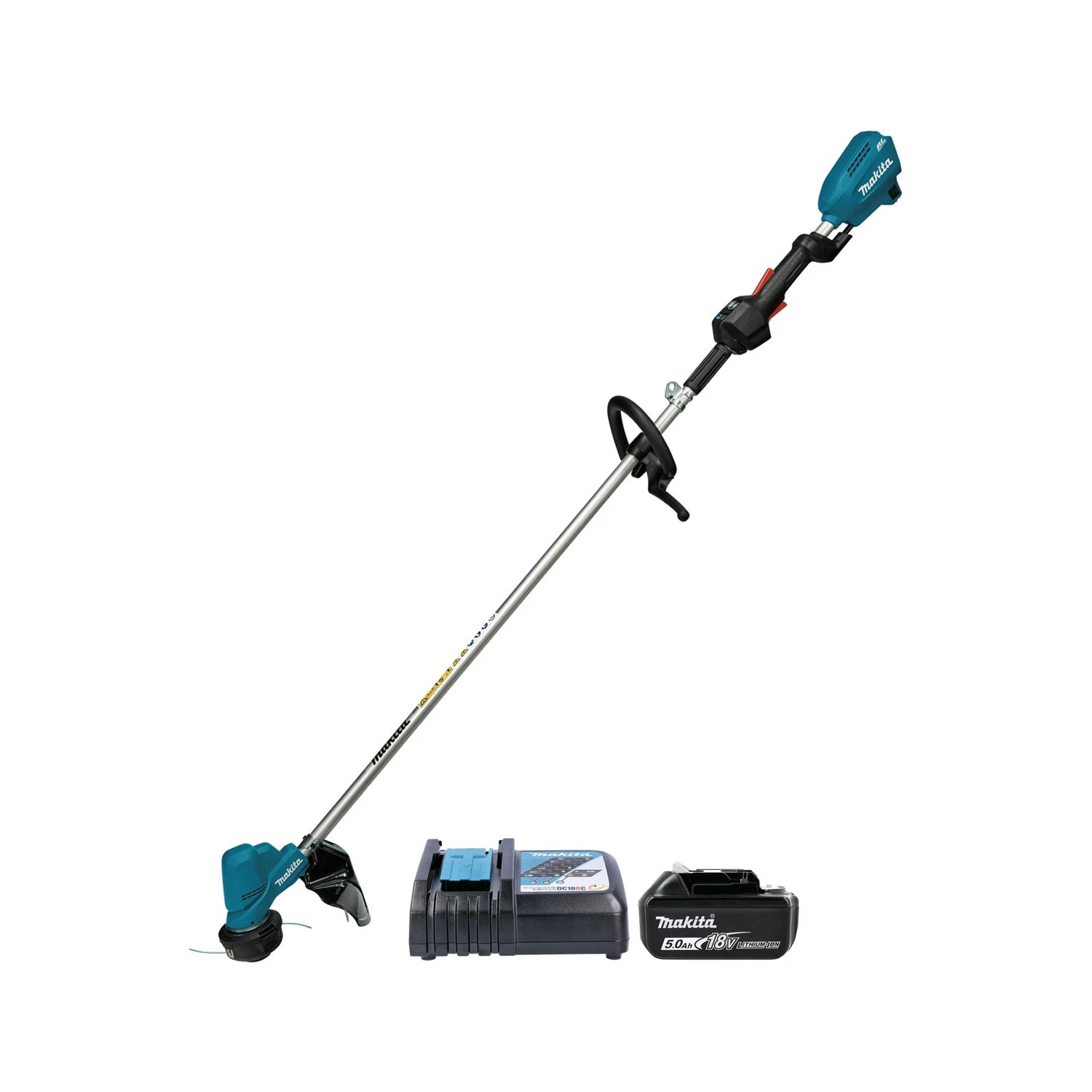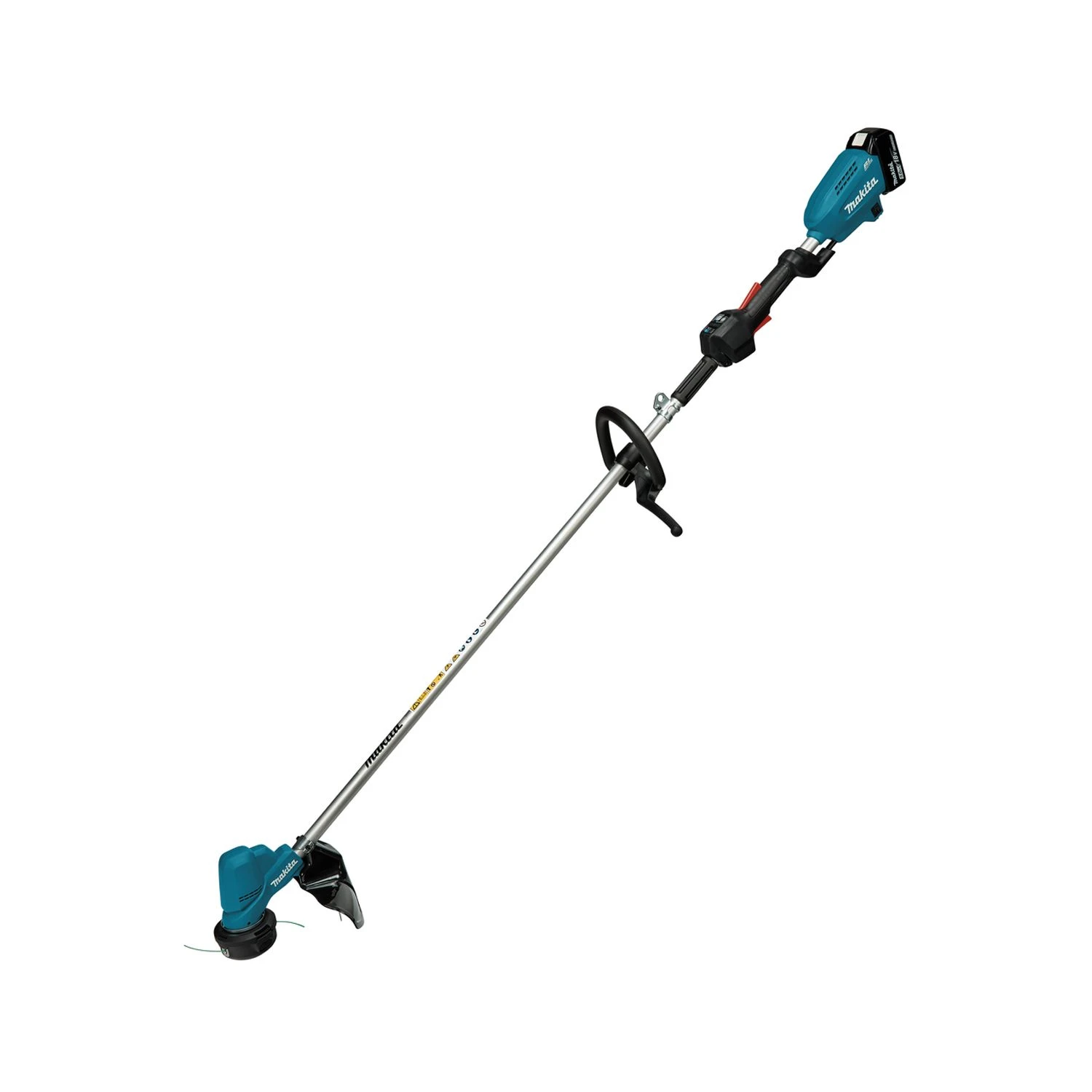 The Makita DUR190 18V Line trimmer is powered by a single 18 volt LXT Li-ion battery. The line trimmer features Active Feedback Sensing Technology (AFT) which shuts down the tool if the rotation speed suddenly slows down. The automatic torque drive technology automatically changes the cutting speed according to the load condition for optimum operation and efficiency during any given job. The machine has 3 speed settings (Hi/Med/Low) and a reverse switch for easy removal of stuck grass clippings. The trimmer has a brushless motor so that you can get the most out of each battery charge.
