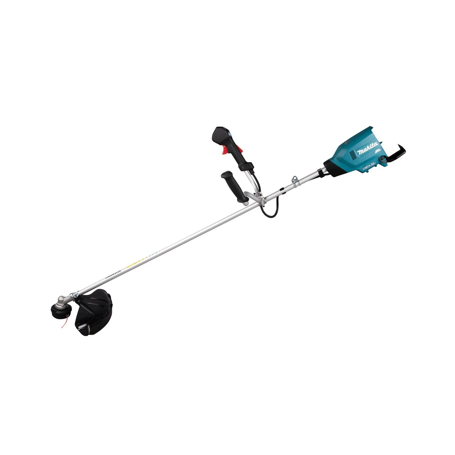 The Makita DUR369AZ twin 18v brushless brushcutter requires 2 x 18v batteries to operate and has been designed to suit the needs of commercial end-users in mind, who are looking for a high powered, quiet and easy to use alternative to a petrol machine, without the compromise on power. It features a cow horn/bike handle and a steel drive shaft for less vibration and longer life. It has a 3 stage speed control – high, medium and low speed, that can be changed by simply pushing a button on the easy to use LED display.