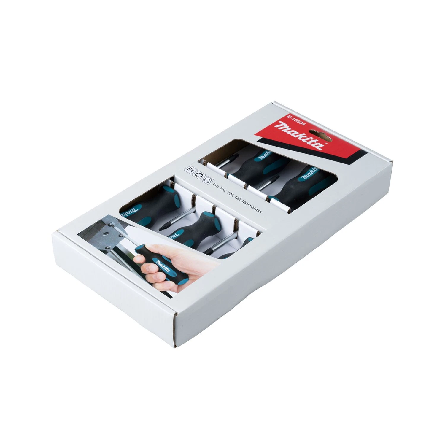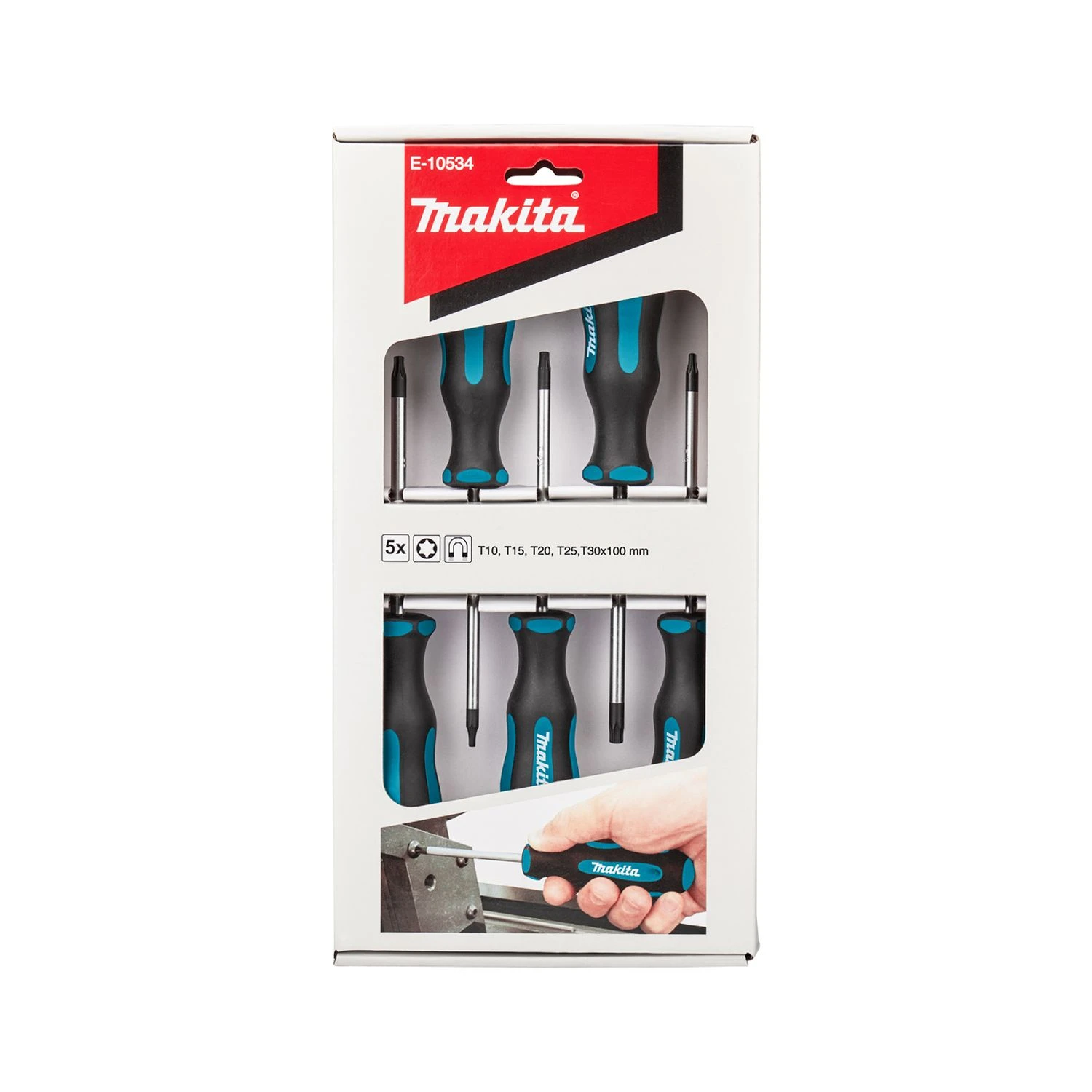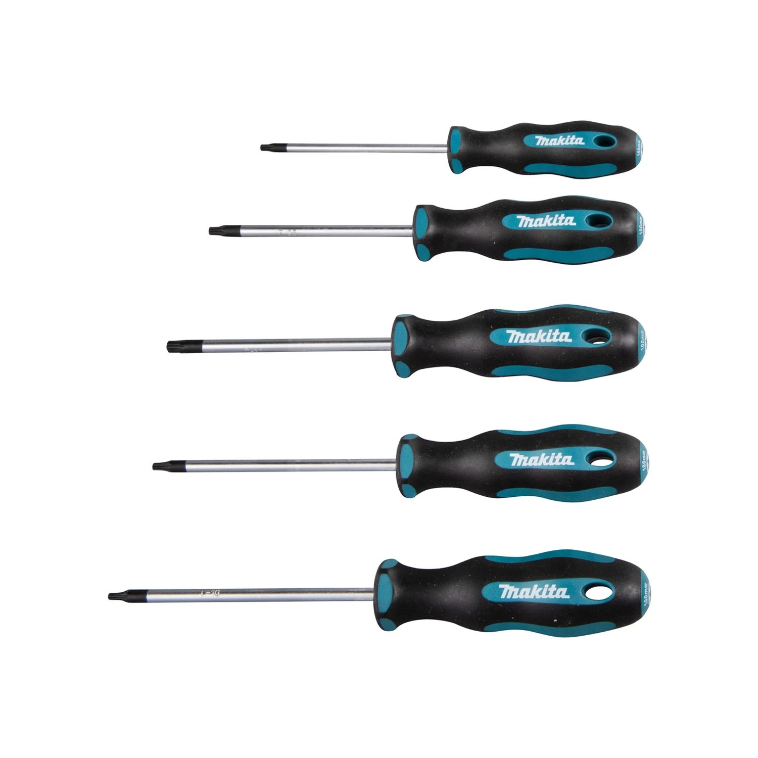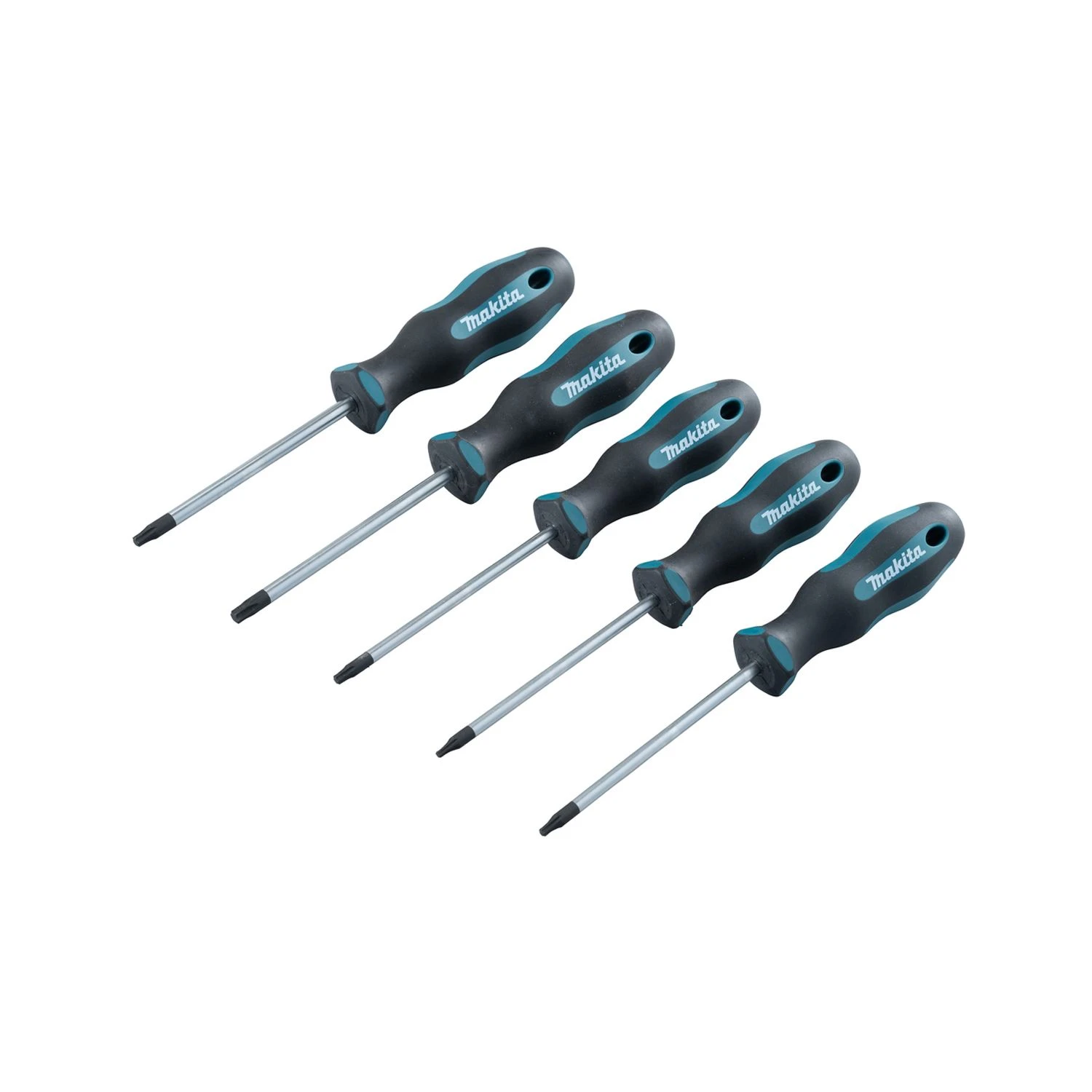 The Makita E-10534 Torx Screwdriver Set x5 Pcs is a selection of screwdrivers for a range of jobs and applications, featuring an ergonomic handle for comfort and a variety of sizes available for different uses.