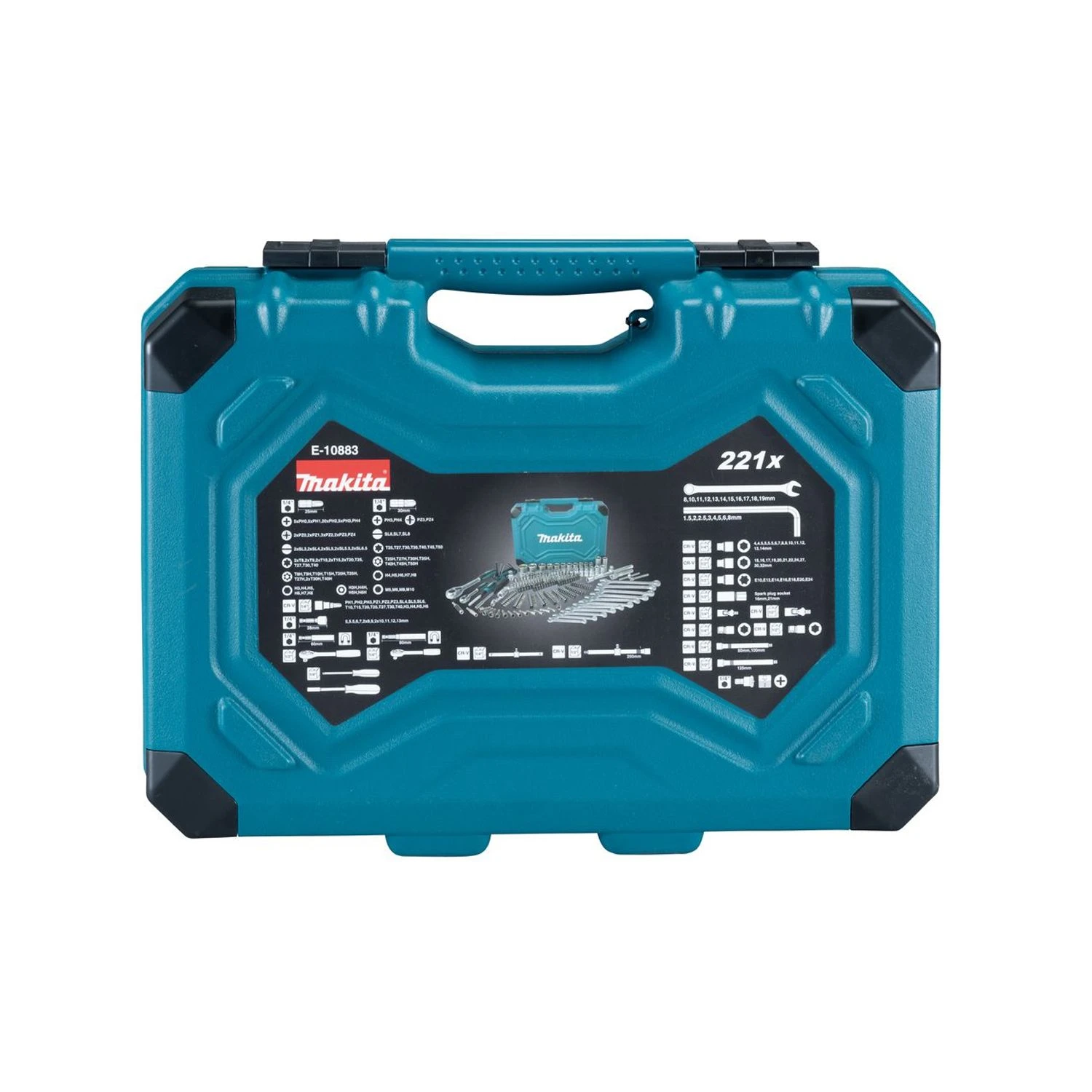 It includes two ratchet handles for 1/2″ and 1/4″ square drive, as well as matching T-Bars, length extensions, universal joints, and of course many sockets. The set also has a 1/4″ square driving handle and a hex drive handle. There are dozens of 1/4″ hex screwdriver bits to fit this handle in Phillips, Pozidriv, slotted, Torx, Security Torx, Hex, Security Hex and spline bits. Most of the accessories are manufactured from high quality chrome vanadium steel, a hardwearing material that can put up with plenty of workshop abuse.