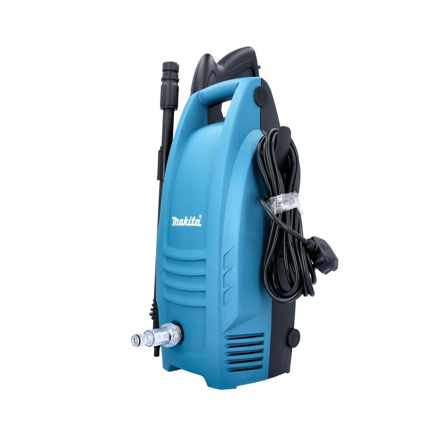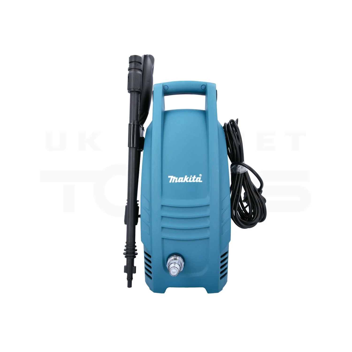 The Makita HW101 Compact Pressure Washer is ideal for domestic use on driveways or patios and comes complete with hose, detergent bottle and lance.