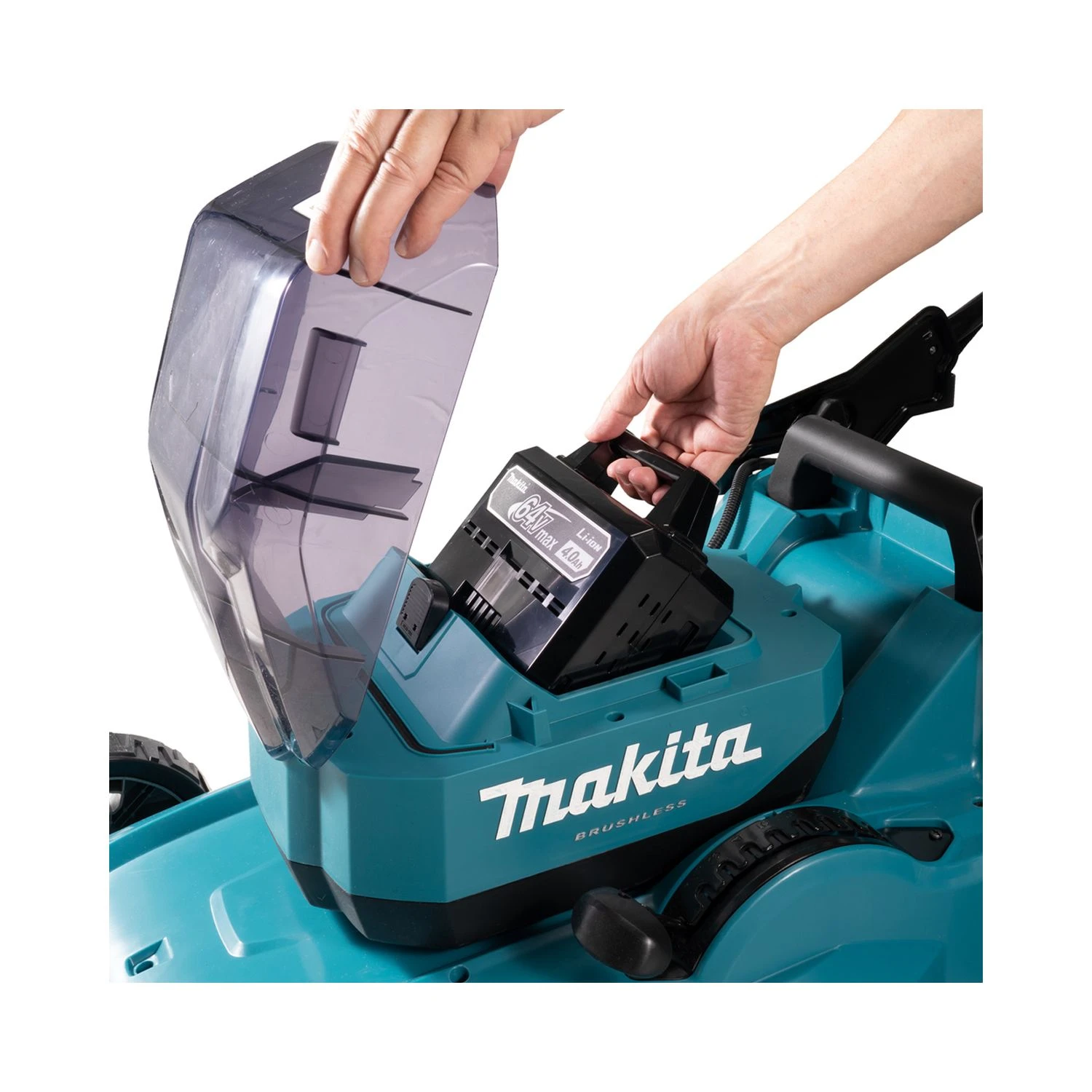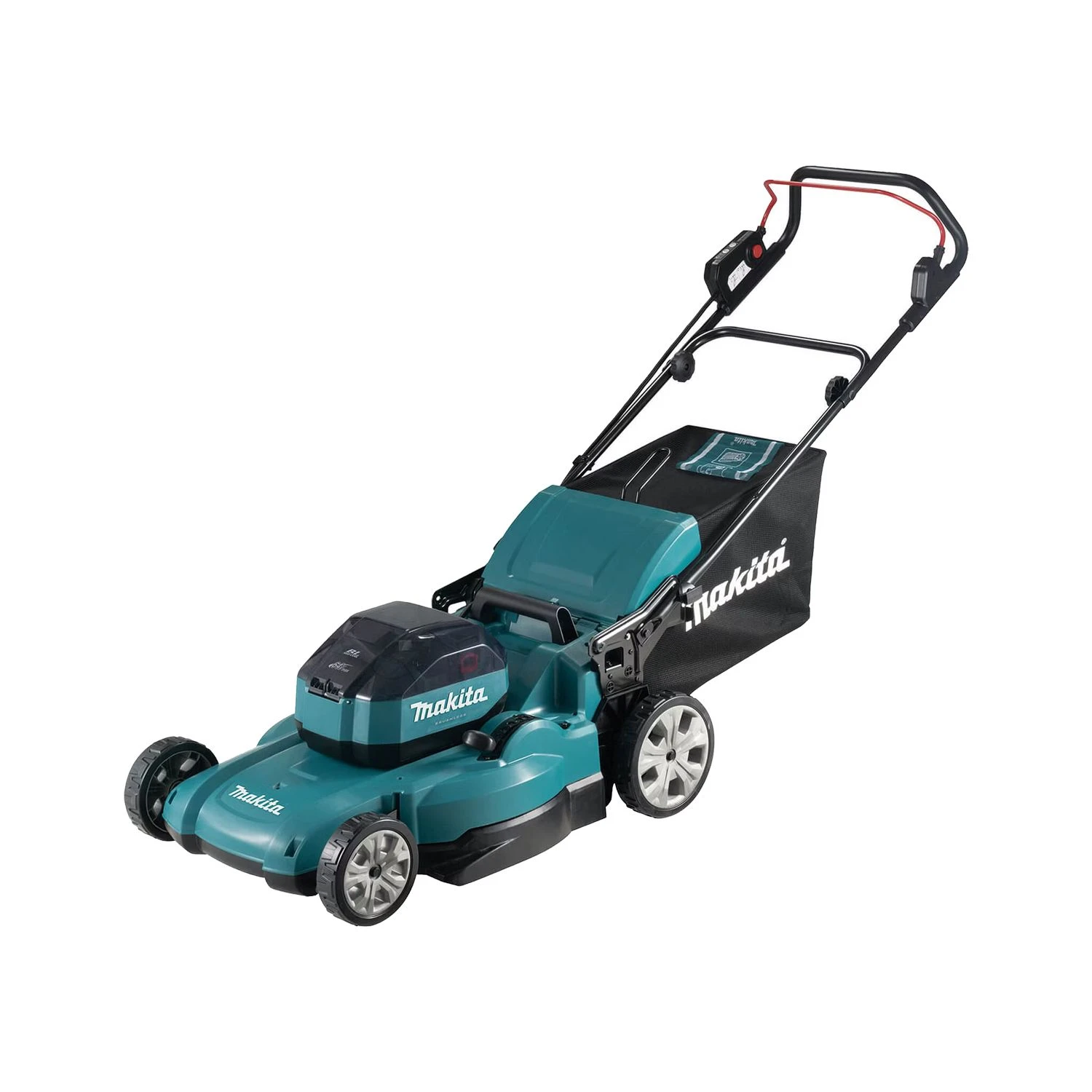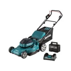 The Makita LM002JM101 64V 530mm Brushless Lawnmower is a hardwearing mower recommended for lawns of up to 1,600m². It delivers three cutting modes – normal, soft no-load, and noise reduction. The mower has 10 cutting heights, which are easily adjustable by handle. The mower has electronic speed control and constant speed control, and is IPX4 level water resistant. It has a plastic mowing deck, and a handy grass box with grass level indicator. Its safety features include a lock-off switch, electric brake, and an anti-resart function. Ideal for professional and DIY users.